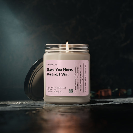I Love You More The End I Win Competition Soy Wax Candle, Sweet Romantic Couples, Decoration Gift Idea, Eco Friendly 9oz. Candle