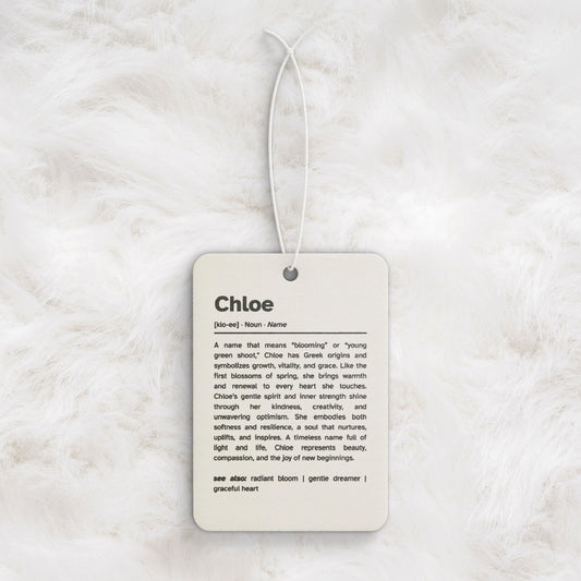 Chloe Name Meaning Car Air Freshener | Gift Ideas