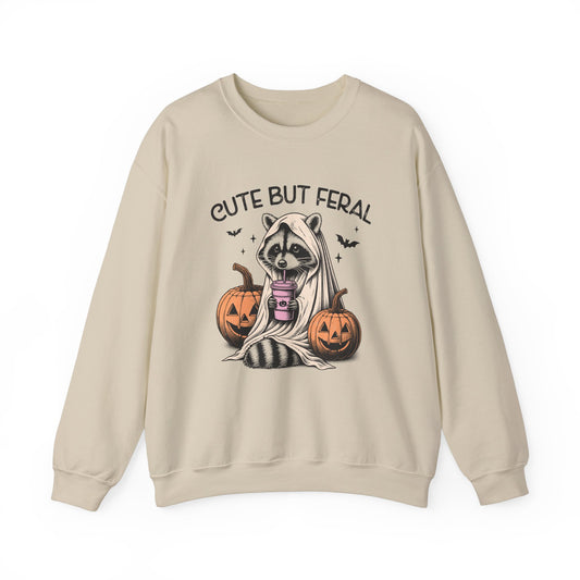 Raccoon Unisex Heavy Blend™ Crewneck Sweatshirt Cute and Feral Halloween Season Gift Ideas