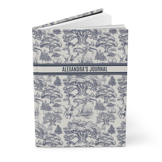 Personalized Name Toile De Jouy Seamless Nature Landscape Pattern Hardcover Journal Version 1