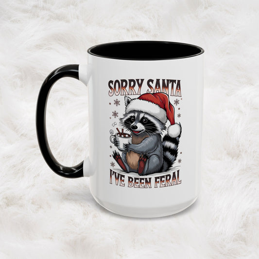 Sorry Santa, I'm Been Feral - Cute Funny Raccoon Mug | Hunting Christmas Holiday Gift