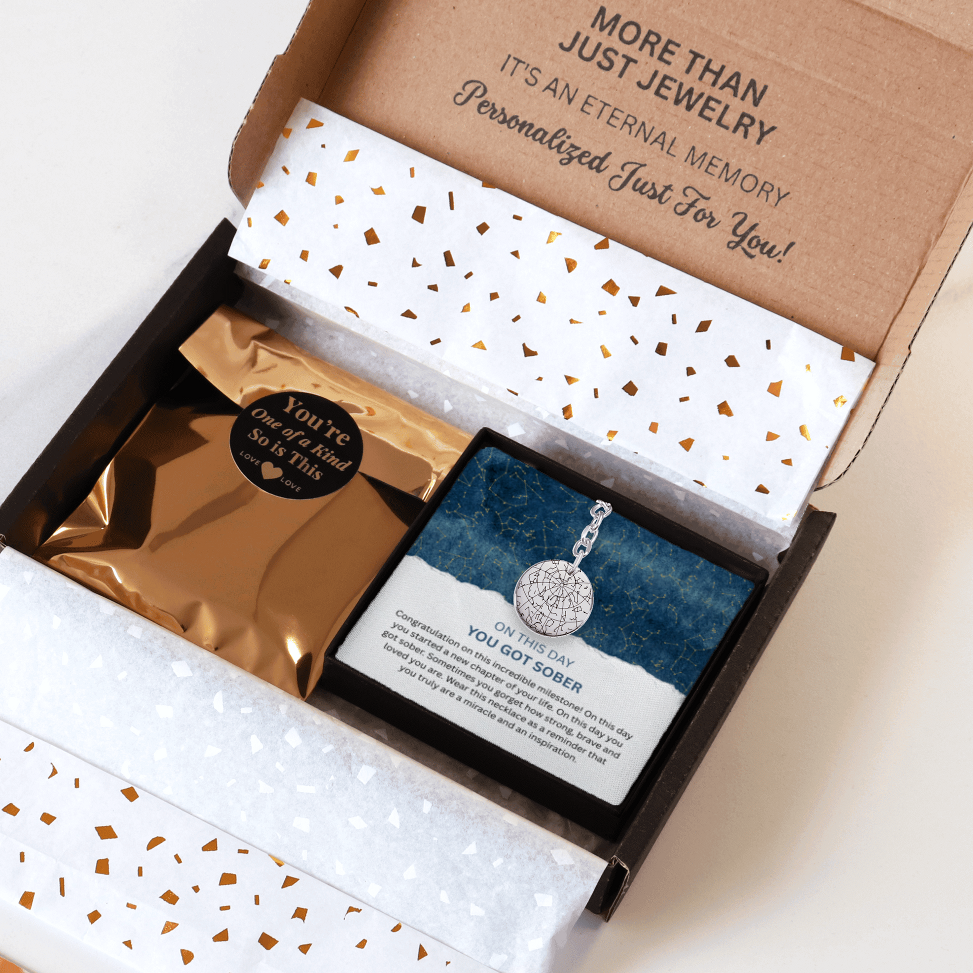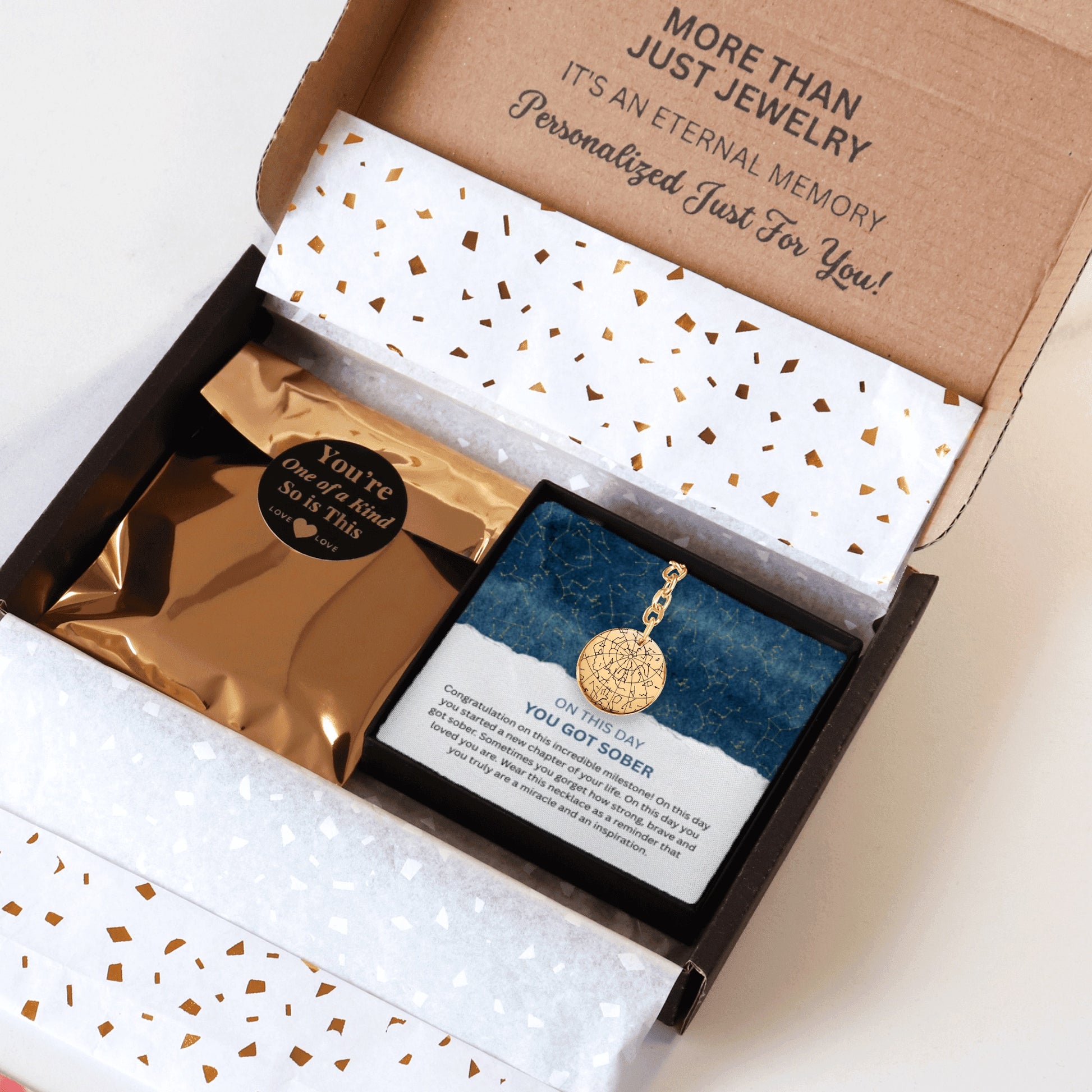 Celebrate strength, courage, and a life-changing milestone with this Custom Sober Day Star Map Sobriety Coin Keychain. This meaningful keepsake features a personalized star map showing the sky on the exact day the sobriety journey began — a powerful reminder of the moment everything changed.