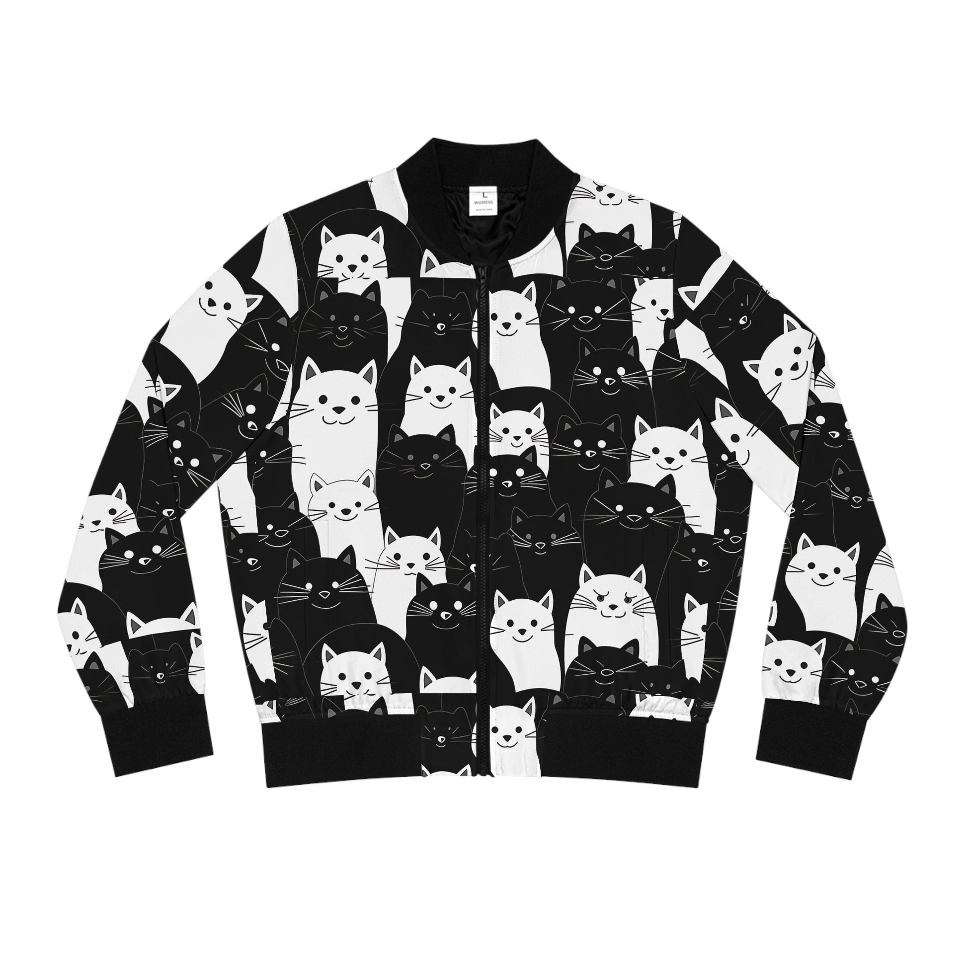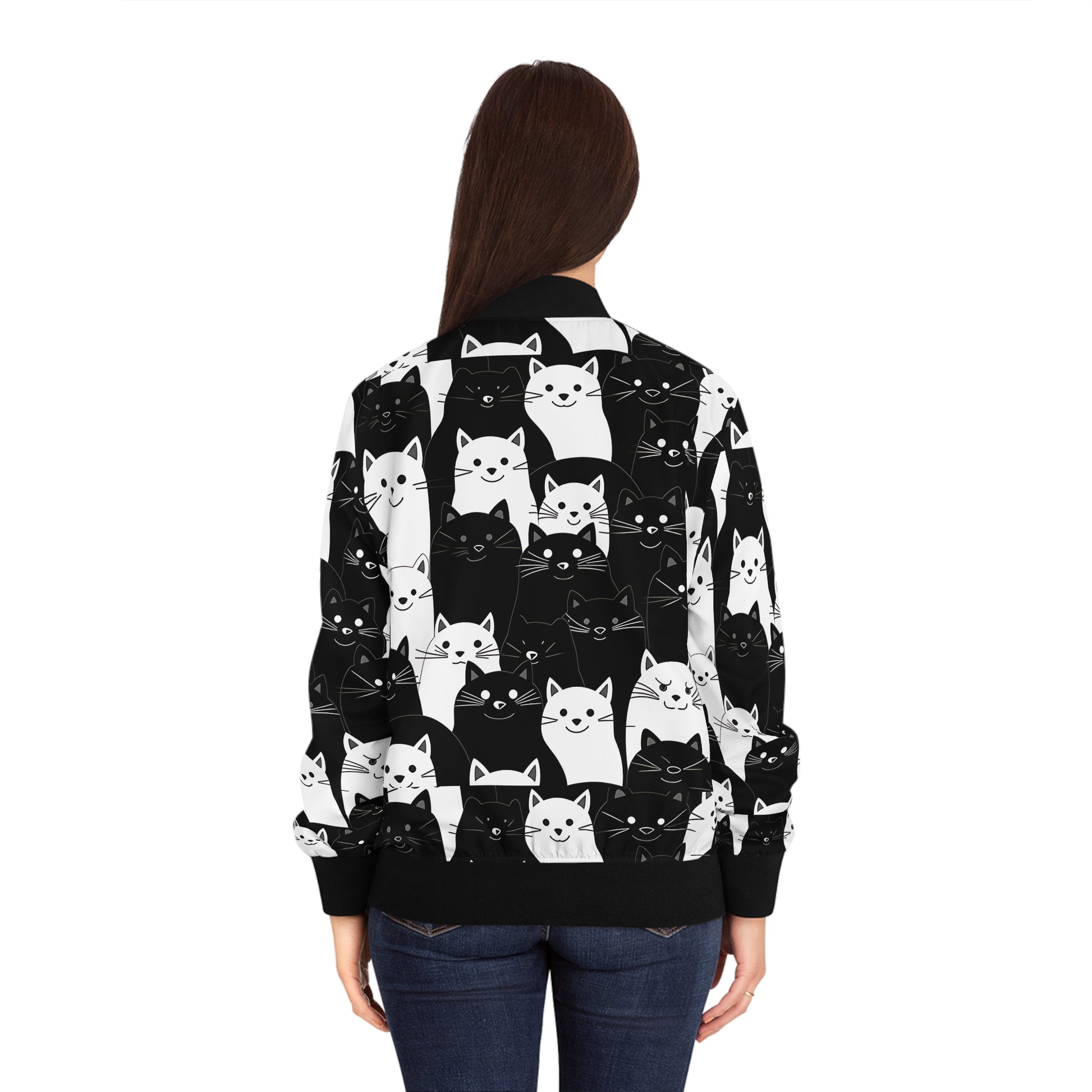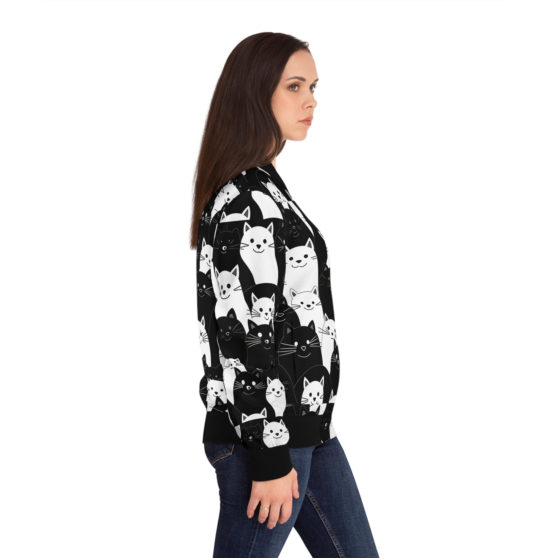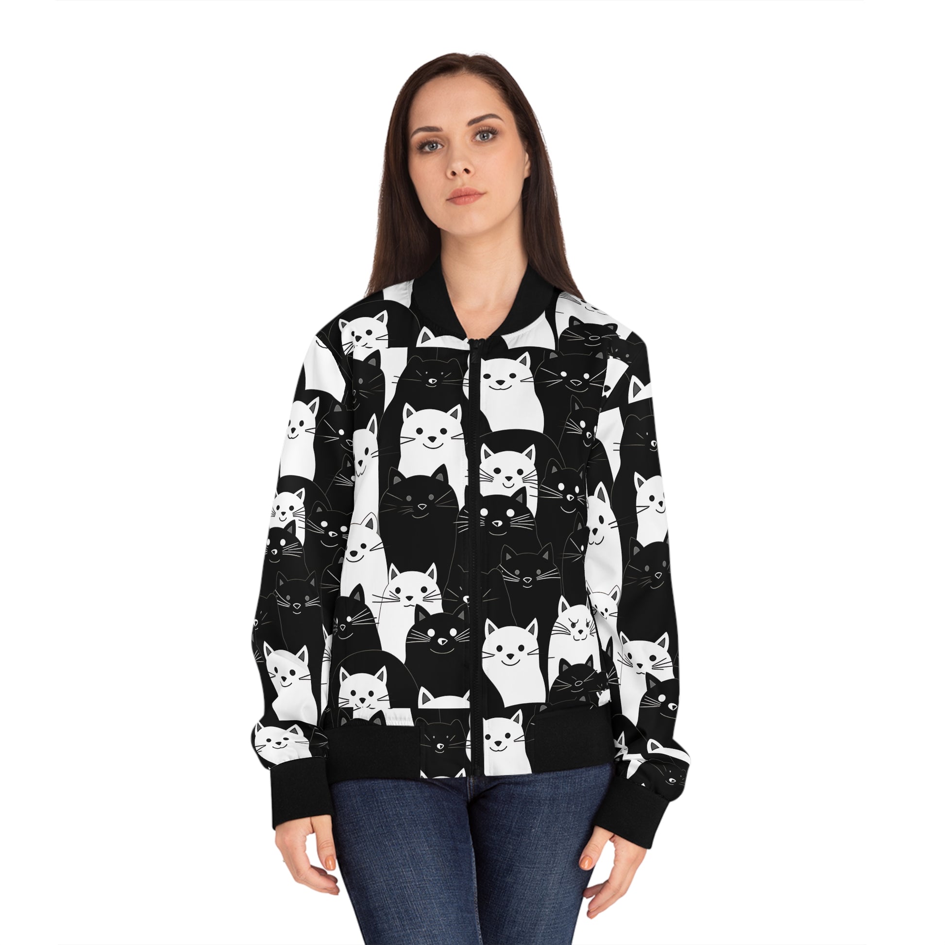 Cute Black & White Cat Pattern Bomber Jacket | Pet Lovers Gift Idea
