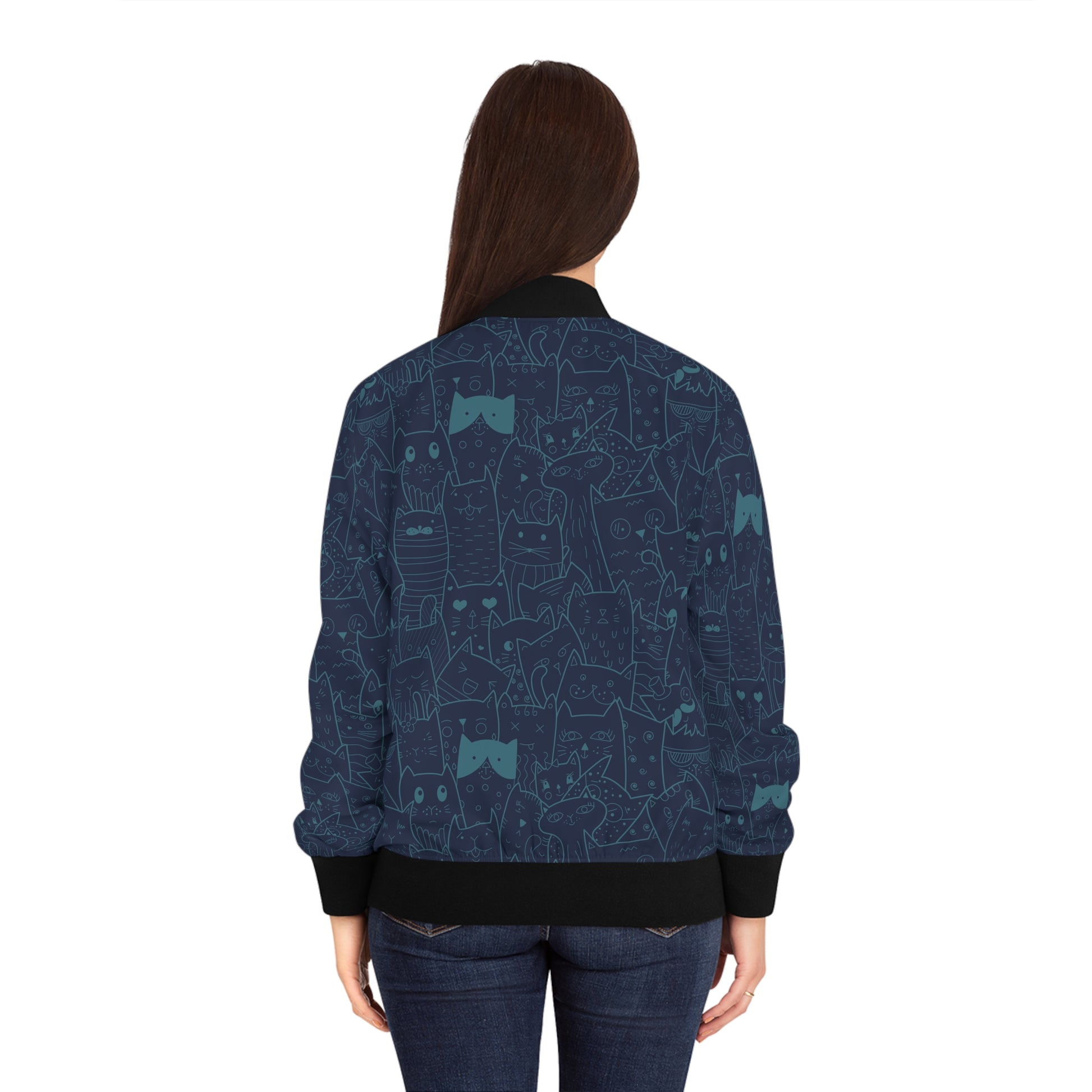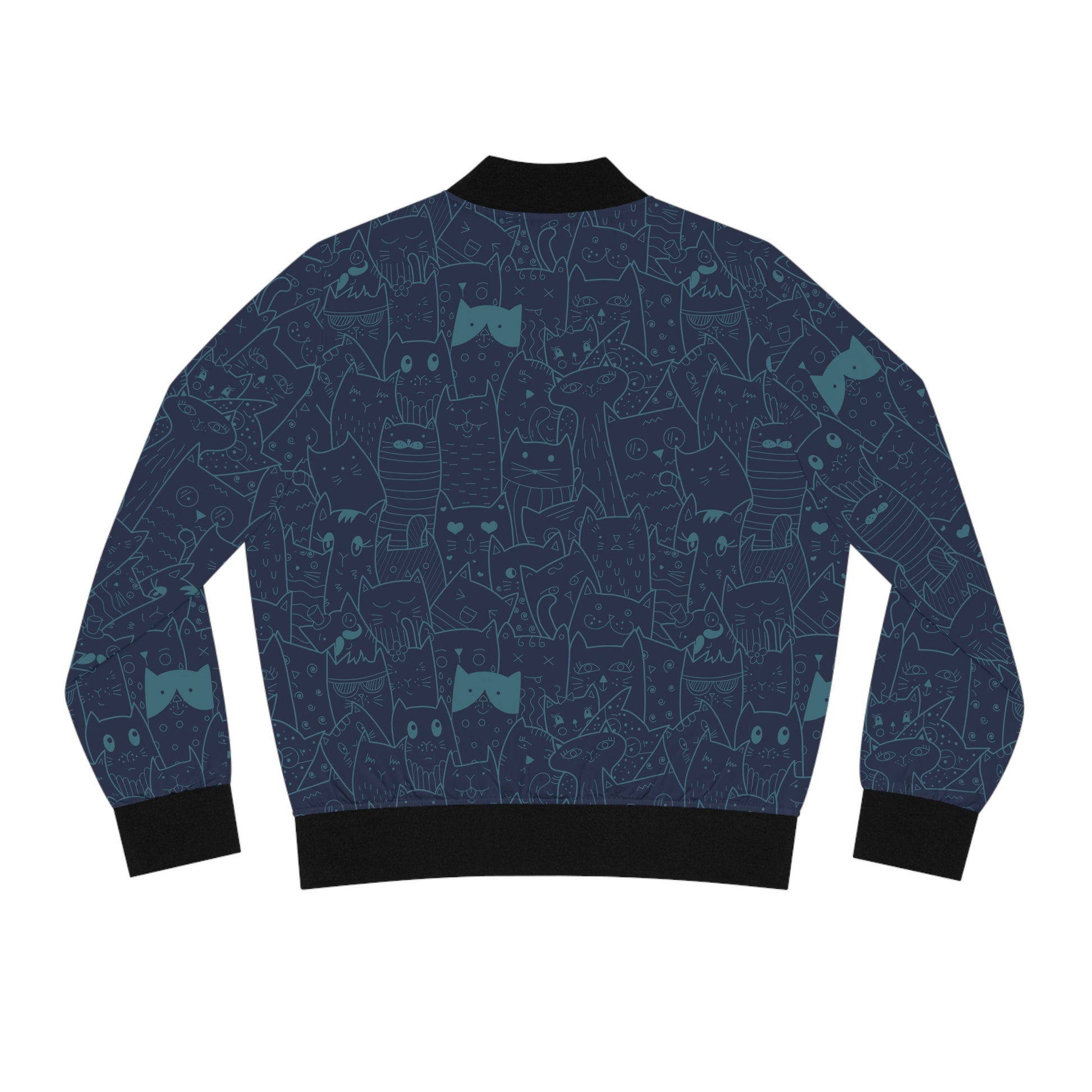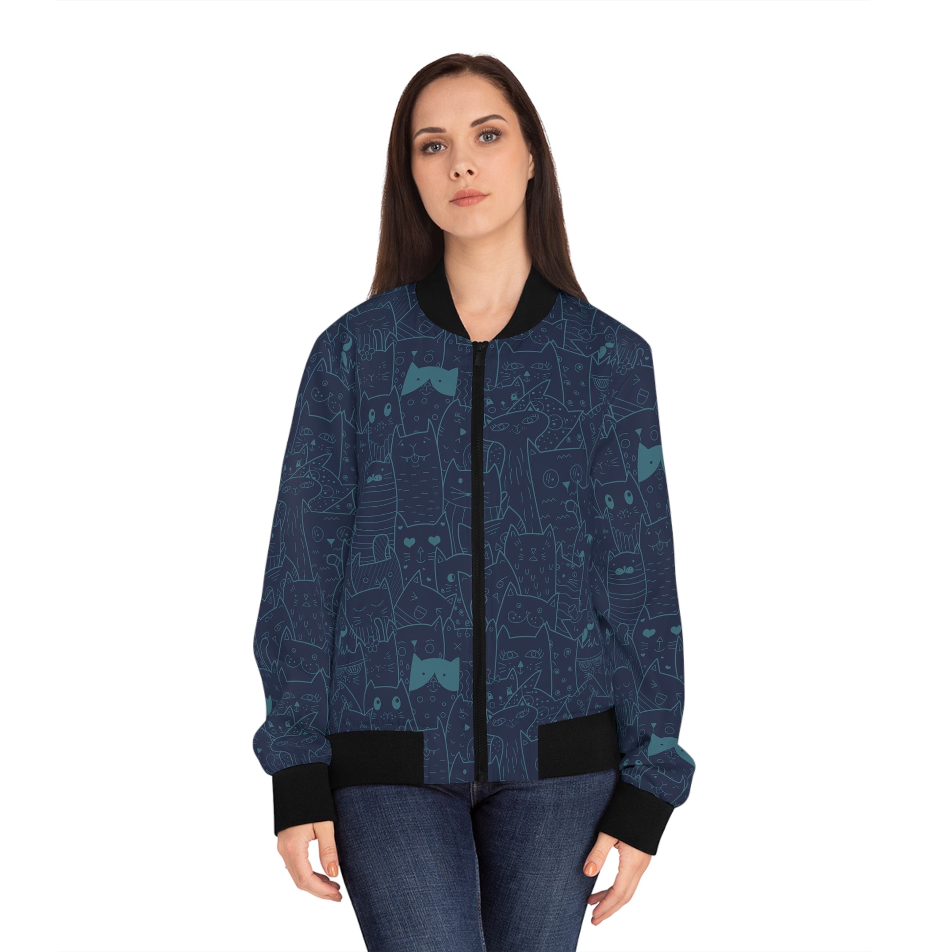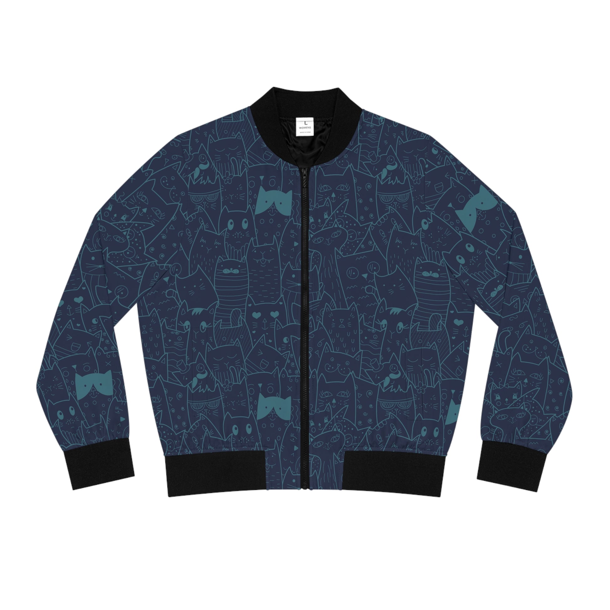 Cute Unique Blue Cat Pattern Bomber Jacket | Pet Lovers Gift Idea