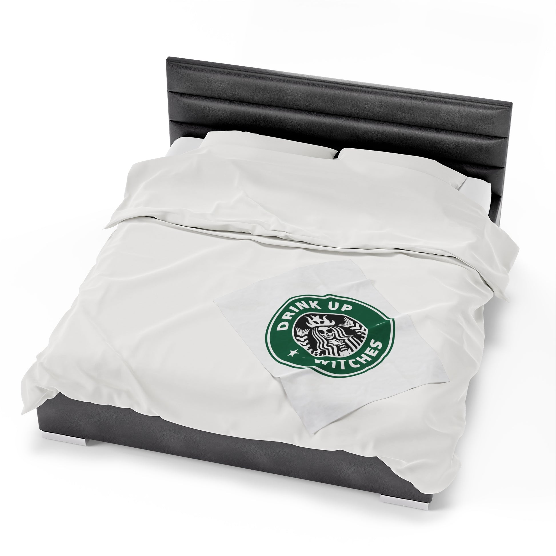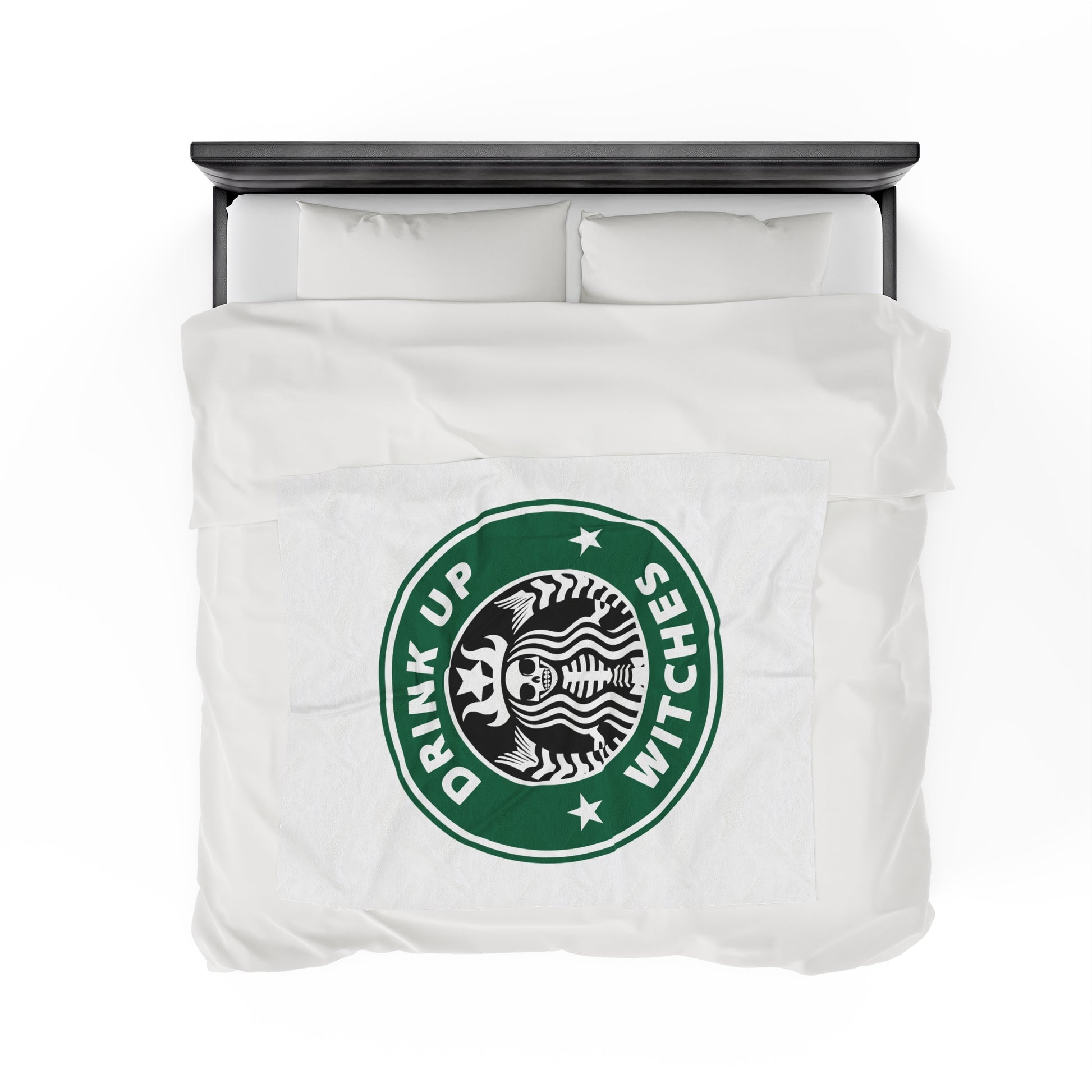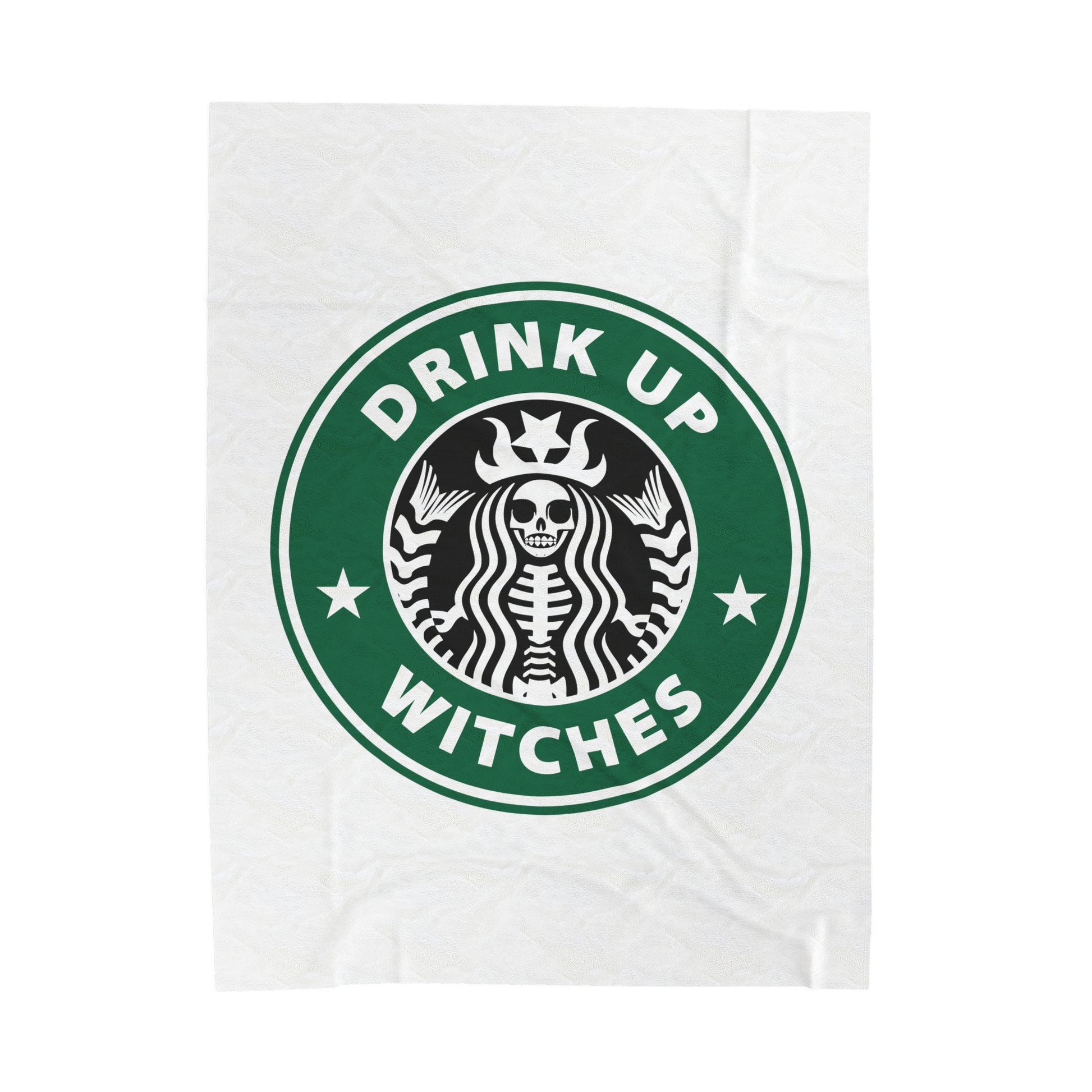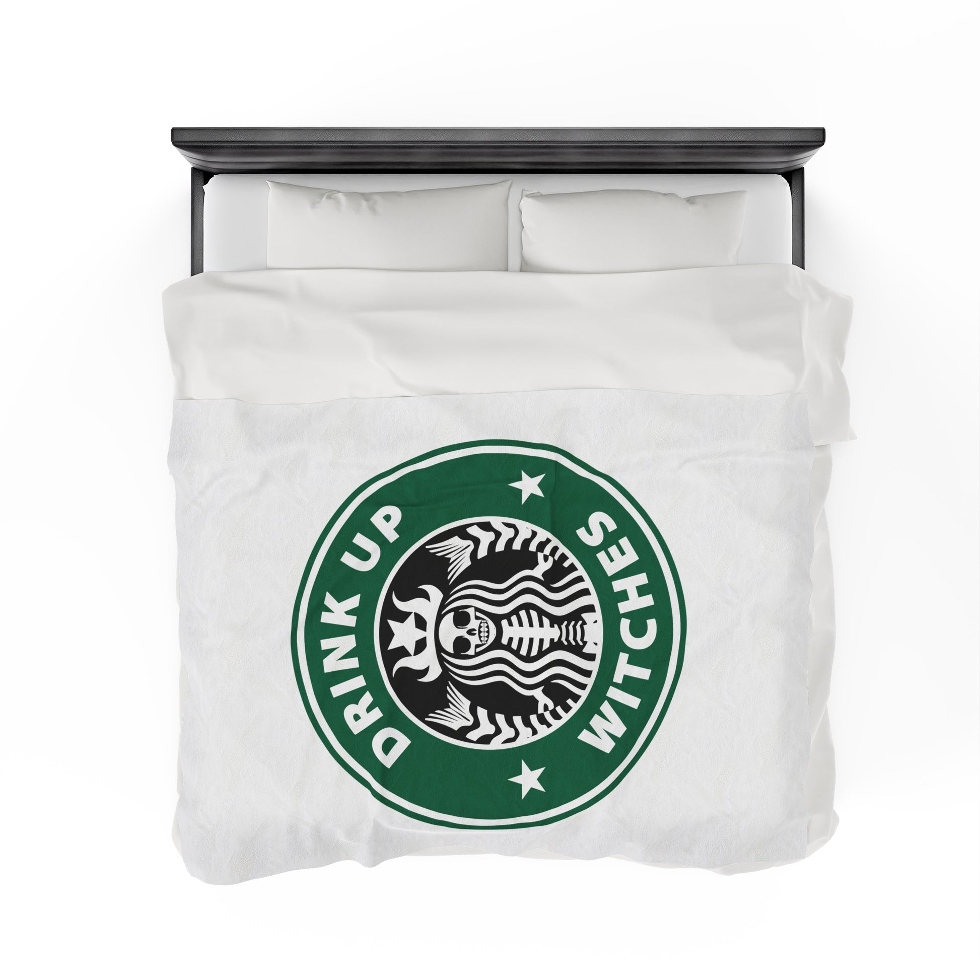 Funny Cozy Sofa Velveteen Plush Blanket Drink up Witches Skeleton Starbucks Fan