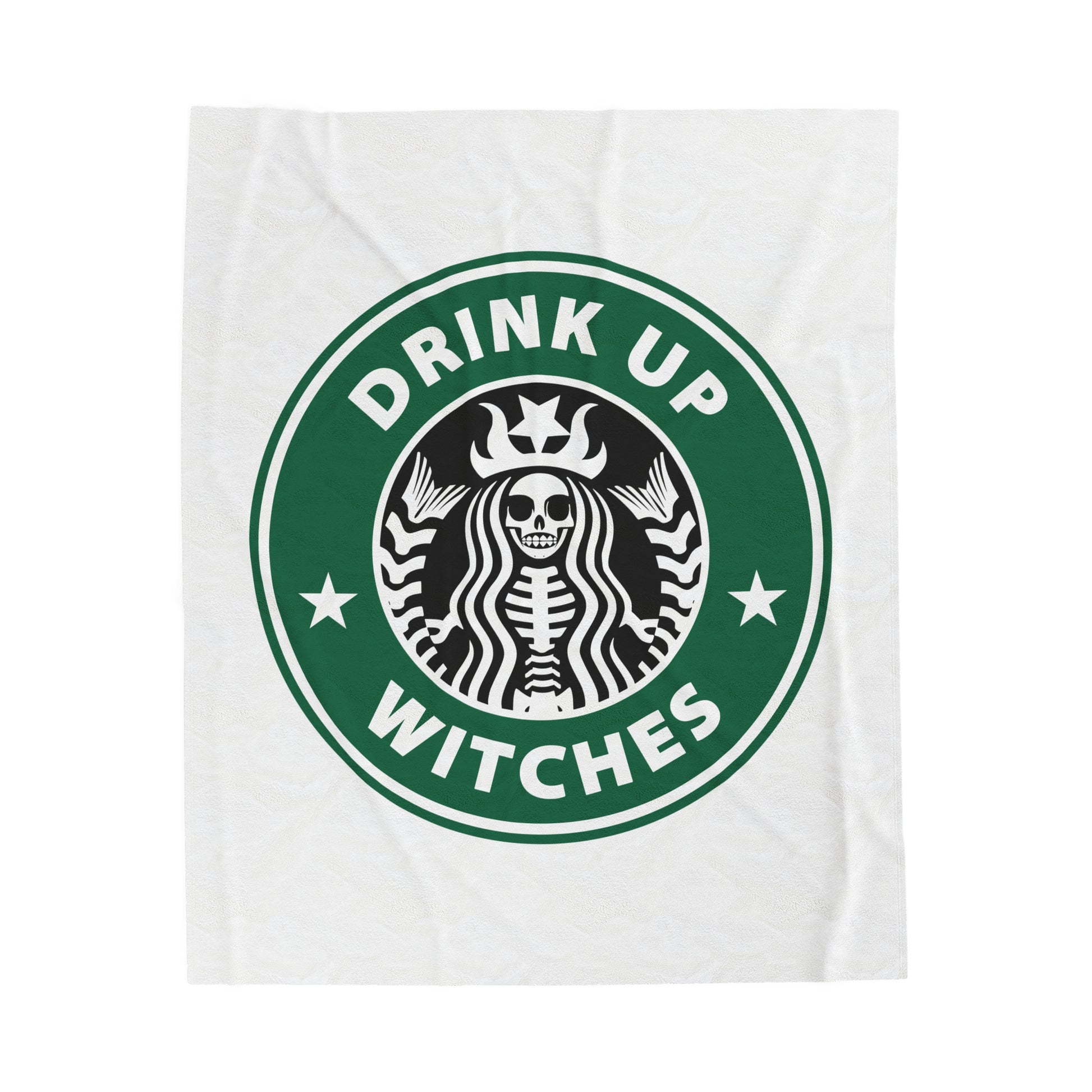 Cozy on the sofa with this Funny Drink up Witches Skeleton Starbucks Fan themed Velveteen Plush Blanket. Perfect for Halloween enthusiasts looking to stay warm and add a touch of humor to their home decor.
