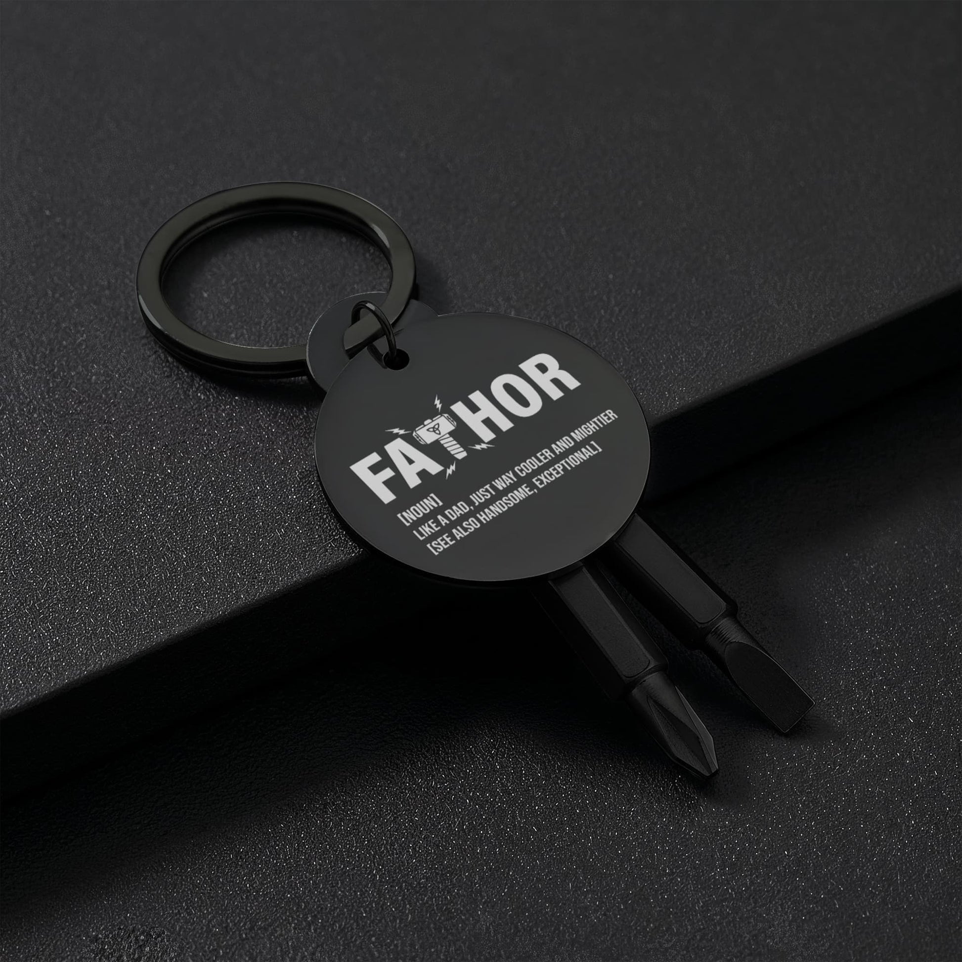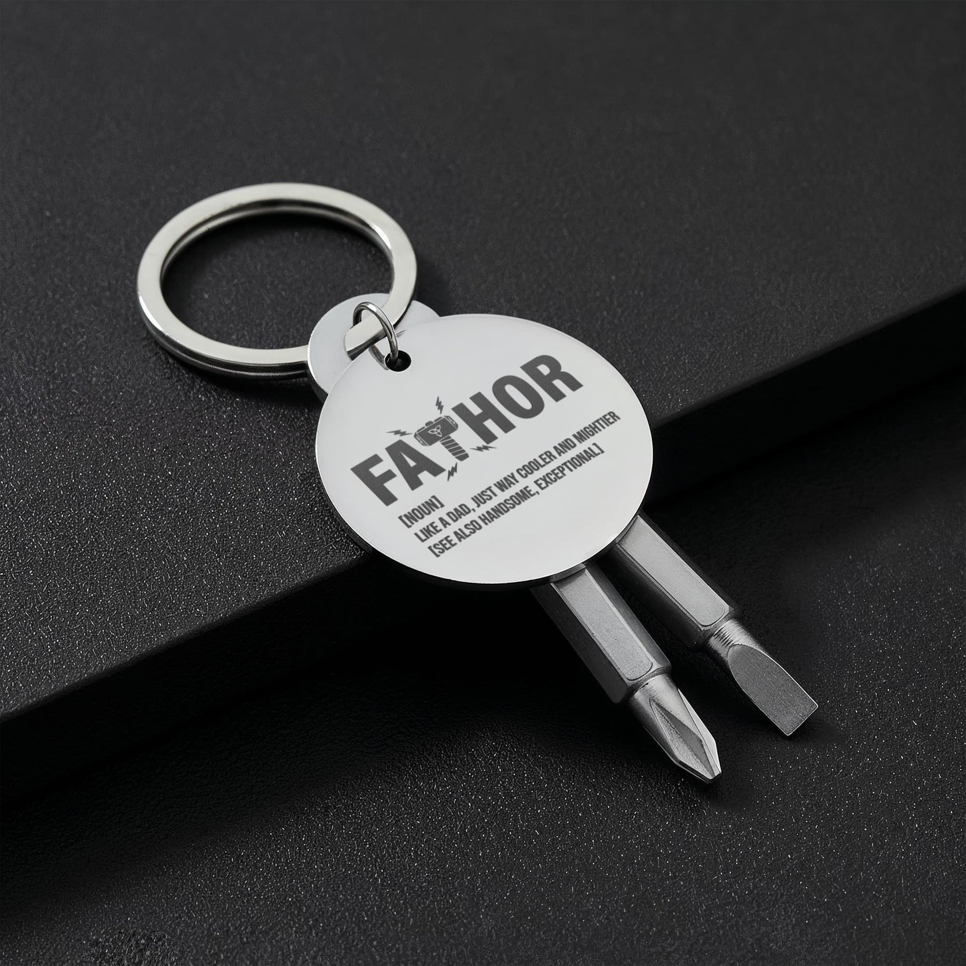 Funny Engraved Father [Fa-Thor] Definition Screwdriver Keychain | Gift For Dad on Father's Day, Birthday, Christmas and Any Occasion