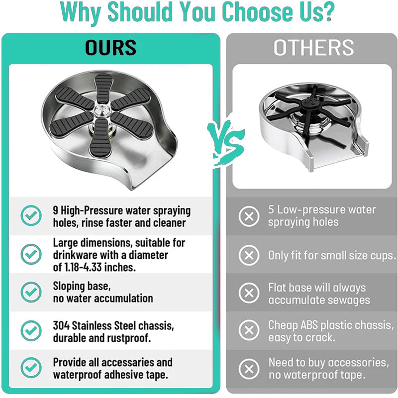 Our cup washer is the perfect complement to your kitchen sink accessories and also comes with all the hardware accessories you need, such as tee fittings and water pipes to separate the hot/cold faucet and connect to the water supply.