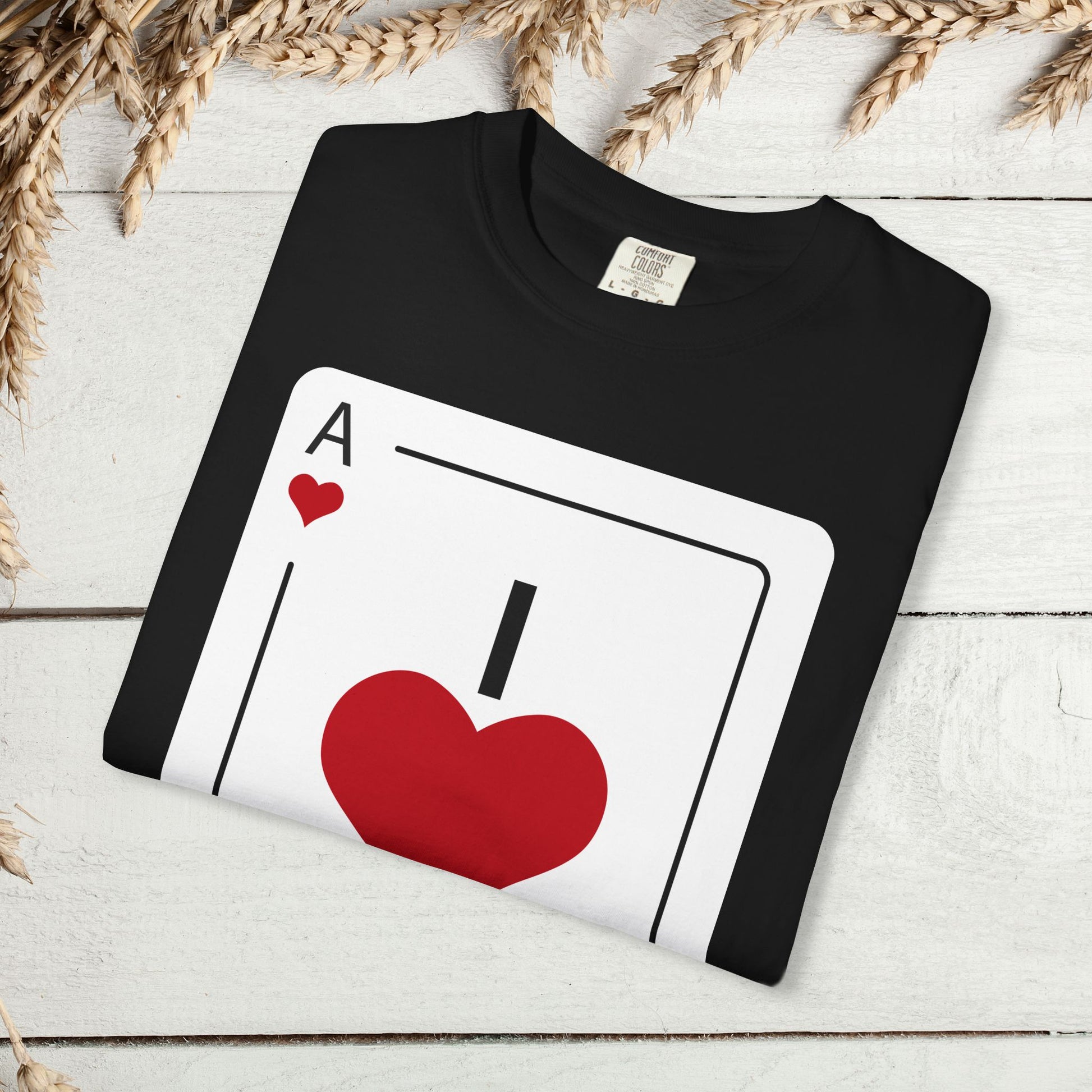 This I Love GD Ace of Heart Garment-dyed Cotton T-Shirt is perfect for those who love unique, vintage-style pieces. It gives off a cool and retro vibe, making it a great gift idea for birthdays, Christmas, festivals, concerts, and more. The relaxed fit and soft texture of the cotton fabric make it comfortable to wear for casual outings or special occasions. Ideal for fashion-forward individuals looking to stand out.