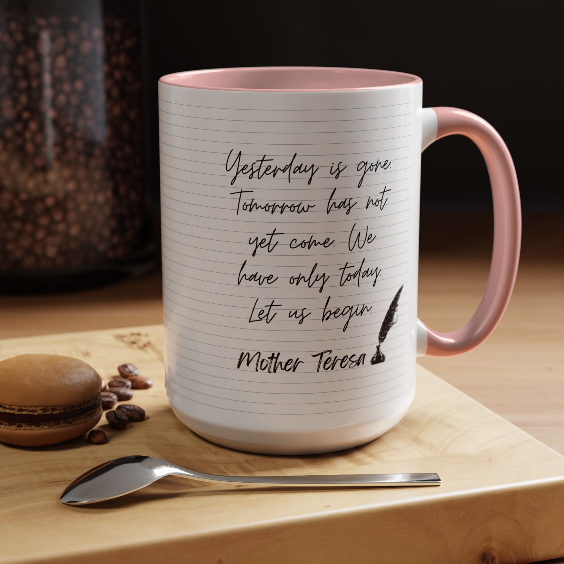 A beautiful and encouraging Learn With Mother Teresa-Inspired Quotes Mug perfect for Christian birthdays and Christmas gifts. This mug brings a sense of positivity and motivation to your morning routine. Ideal for those who appreciate inspirational quotes and starting their day with a positive mindset.