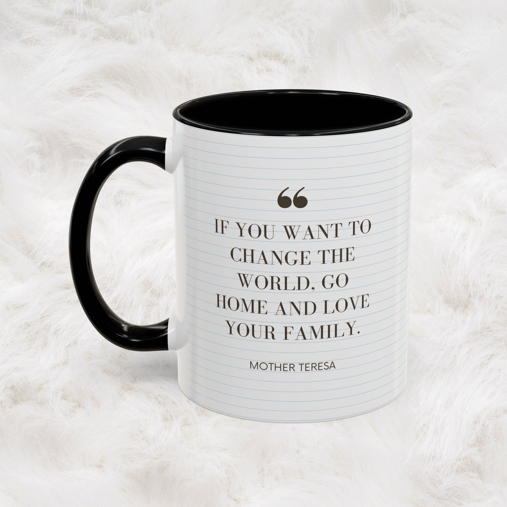 Love your Family - Mother Teresa Inspired Quote Mug | Christian Catholic Souvenir Birthday Christmas Gift Ideas