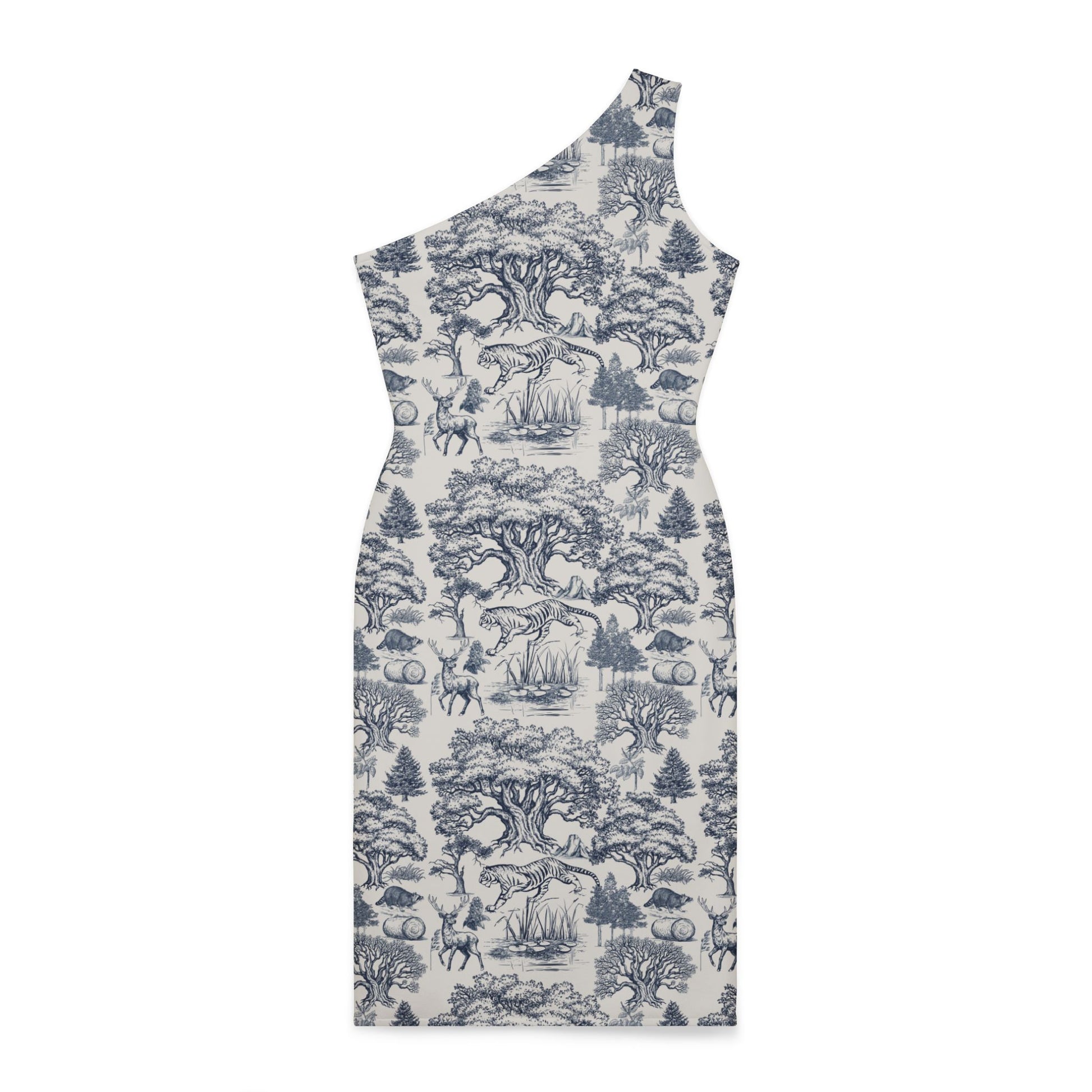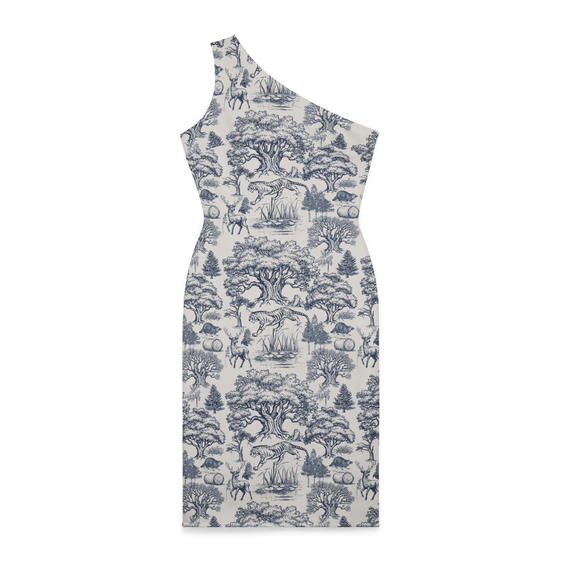 Embrace a unique kind of elegance in this one-shoulder dress featuring a fitted silhouette and a knee-length straight hem. With a sleeveless design and true-to-size fit, it's perfect for any occasion. The hidden side 14" zipper ensures easy dressing, while the YKK invisible nylon upholstery zipper offers a seamless finish. Featuring non-separating, closed-end construction with an automatic lock slider in white, this dress is both functional and fashionable.