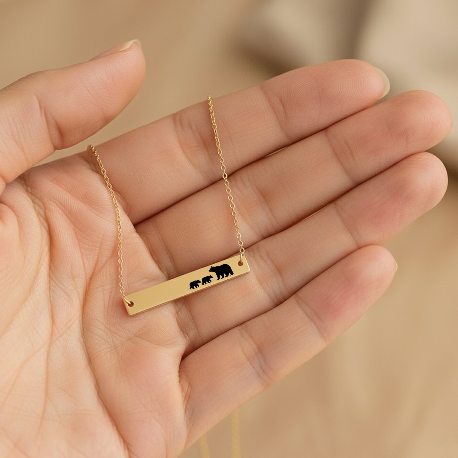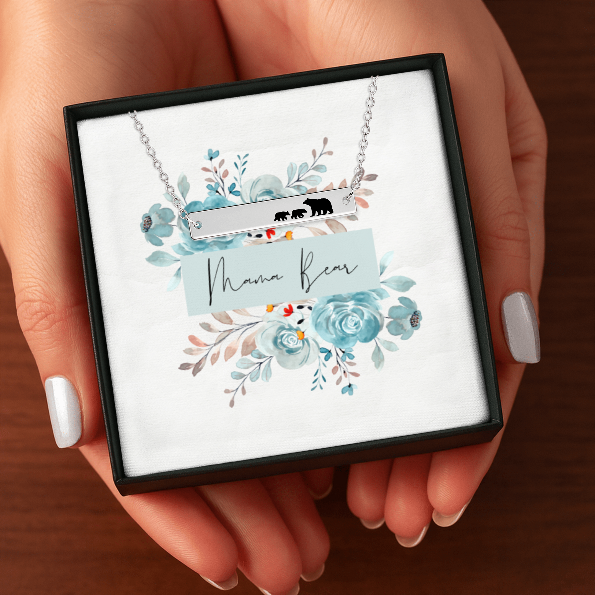Mama Bear Bar Necklace, Mama Bear Bear Cubs Necklace, Mommy Necklace, Mother's Day Gift, New Mom Gift, Push Present for Wife, Gift for Her