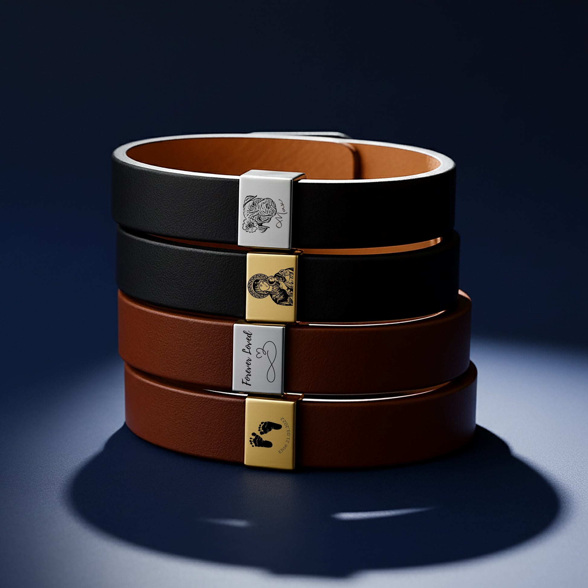 Mary and Jesus, Our Lady of Perpetual Help Premium Engraved Men's Leather Bracelet