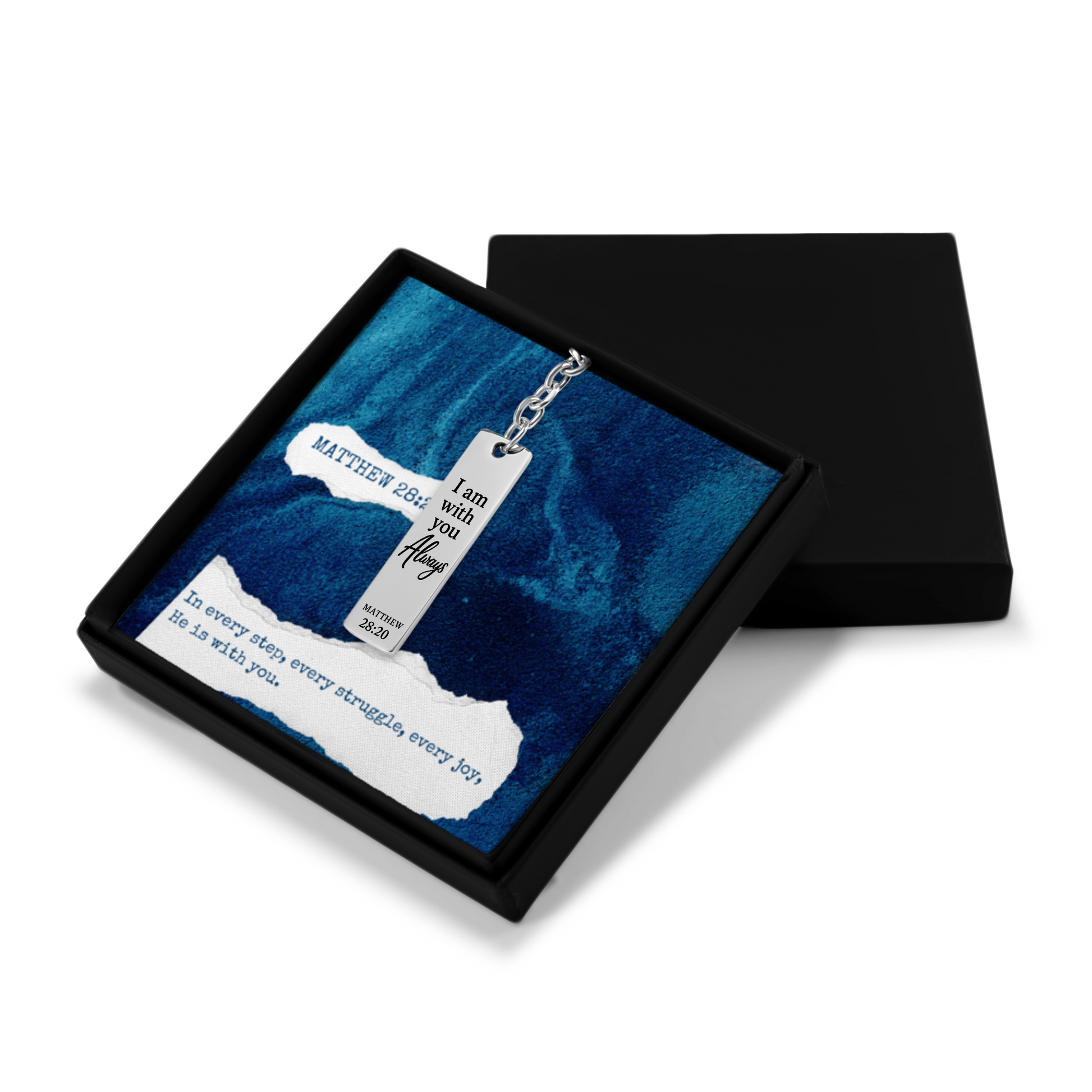 Matthew 28:20 Engraved Vertical Bar Keychain | I am with You Always | Bible Verse Christian Faith Religious Inspirational Gift Ideas