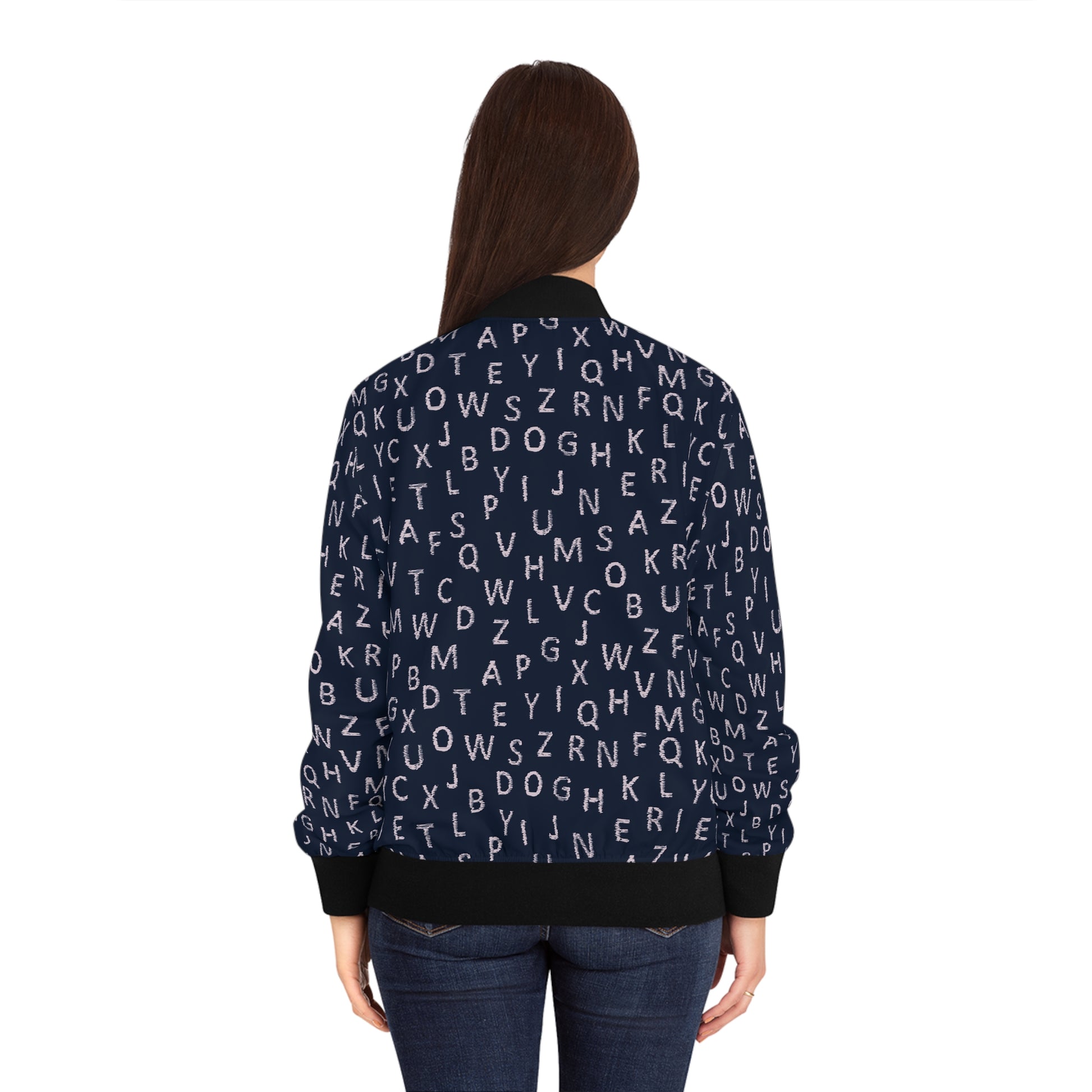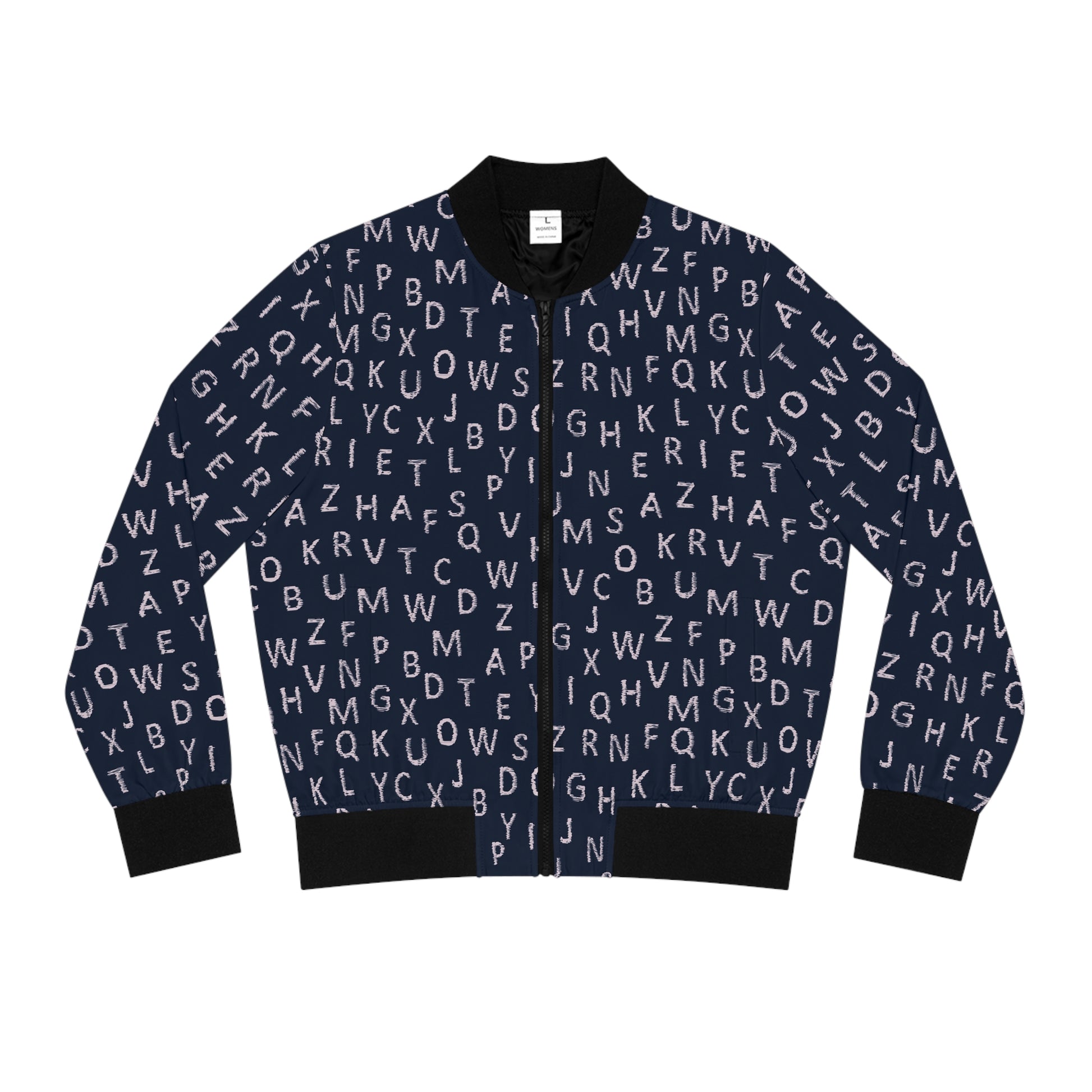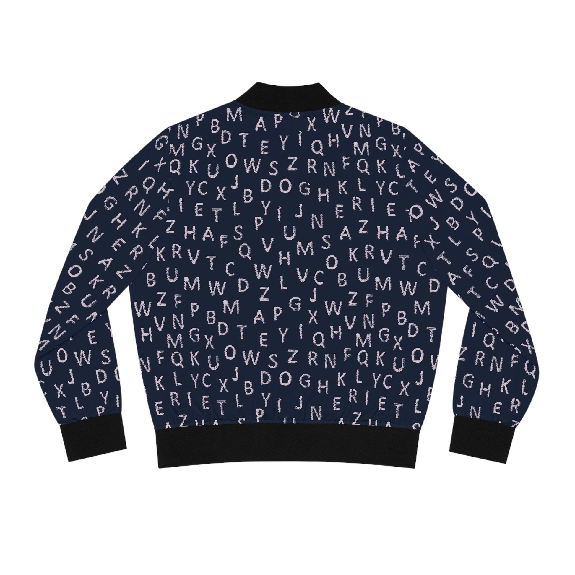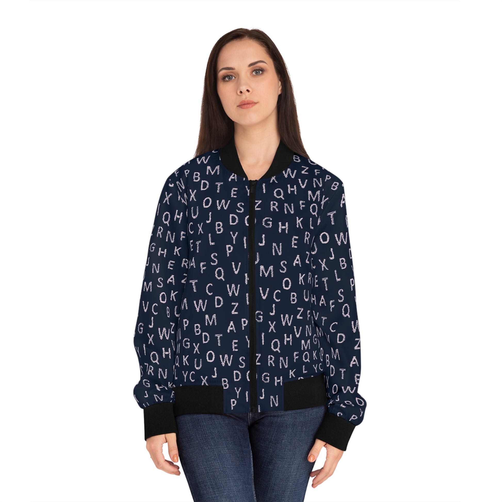 Navy Blue Pink Alphabet Letters Lightweight Bomber Jacket | Women’s Casual Fashion Outerwear