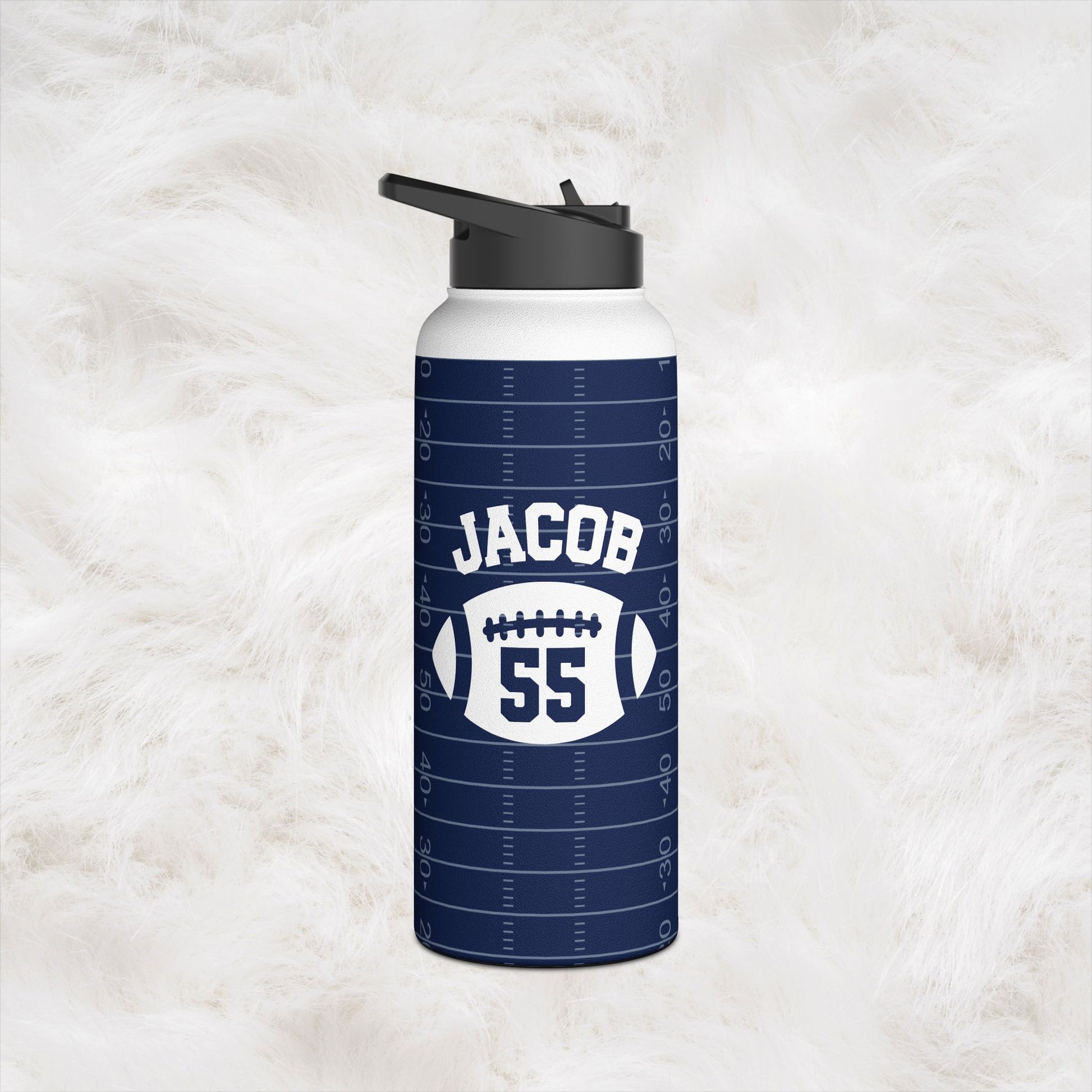 Carry your game-day energy everywhere with this stainless steel water bottle made for players, coaches, and devoted fans. Personalized with a name and number, it feels like your own sideline essential — cool to the touch, bold in color, and built to last the season after season. The matte, grainy finish gives it a rugged, athletic look that stands up to turf, gym floors, and travel bags. Keep cold water at hand through long drills or hot stadium afternoons, or tuck it into your bag for early-morning practice. Each sip reminds you of team huddles, late-night film sessions, and the quiet focus before kickoff.