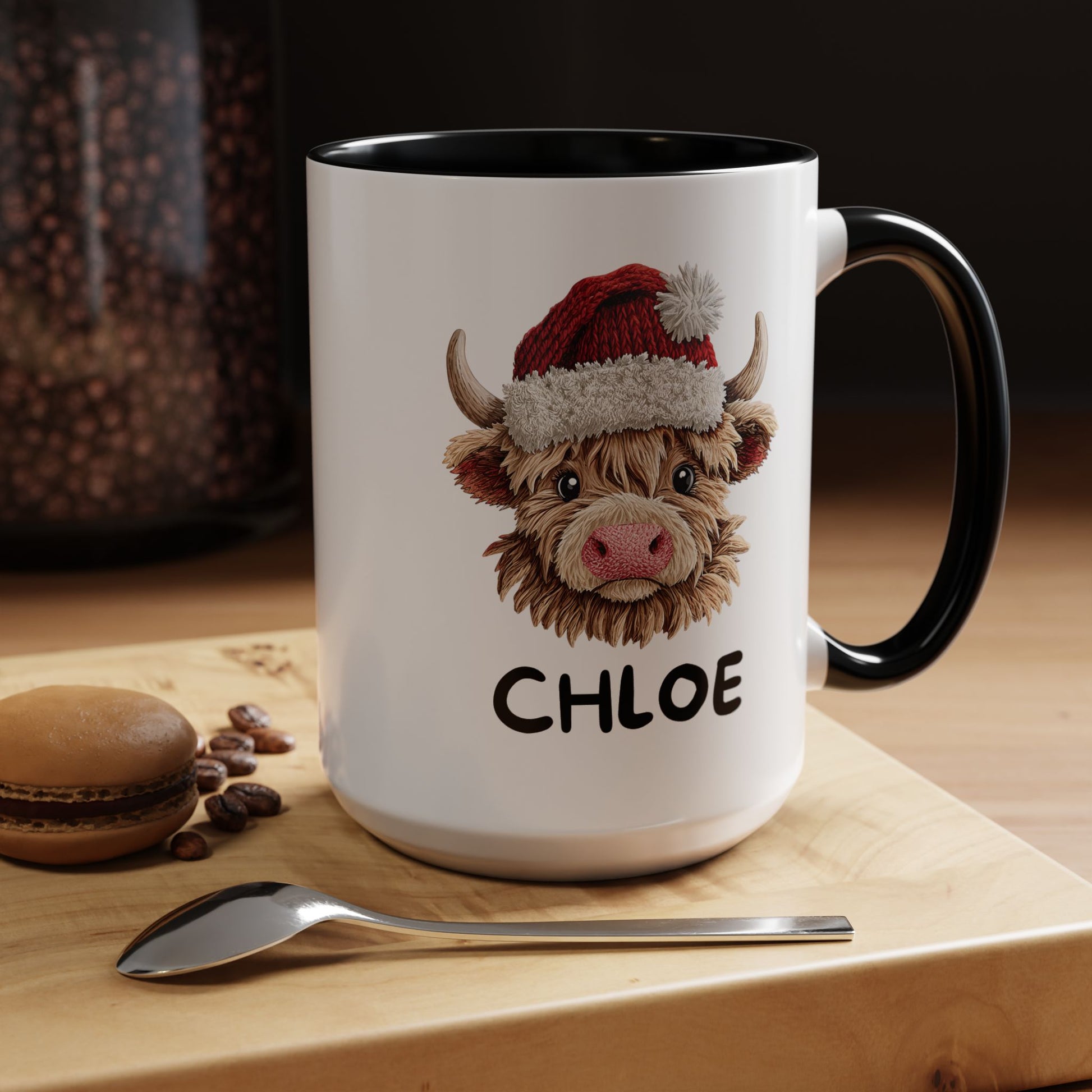 Personalized Name Cute Printed Crochet Yarn Christmas Highland Cow Mug is the perfect holiday gift for someone who loves hunting and Christmas. The vibrant colors and eye-catching color contrast give a cozy and festive vibe, making it perfect for enjoying a warm drink during the holiday season. This mug is relevant to those who appreciate personalized gifts and unique designs.