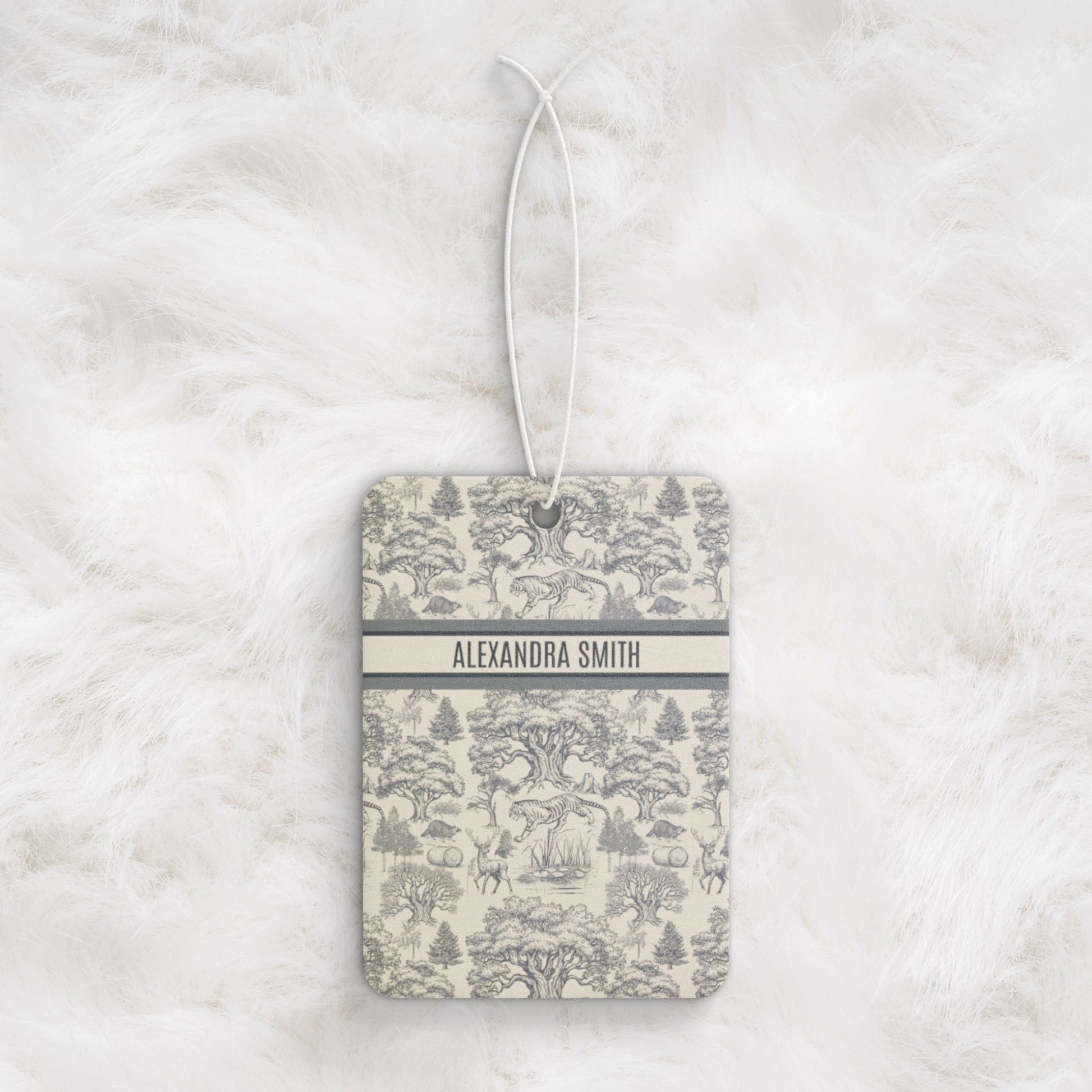 Luxury vintage toile de Jouy French nature landscape air freshener for your car, personalized with a name. This version 2 design provides a touch of elegance and sophistication to your vehicle, creating a luxurious and calming atmosphere during your drives. Perfect for those who appreciate vintage aesthetics and nature-inspired decor. Ideal for car enthusiasts who enjoy personalizing their vehicles or for those looking for a thoughtful gift for a loved one. Relevant for car owners on road trips, daily commutes, or anyone who wants to add a touch of luxury to their car interior. Perfect for gifting during holidays, birthdays, and special occasions.