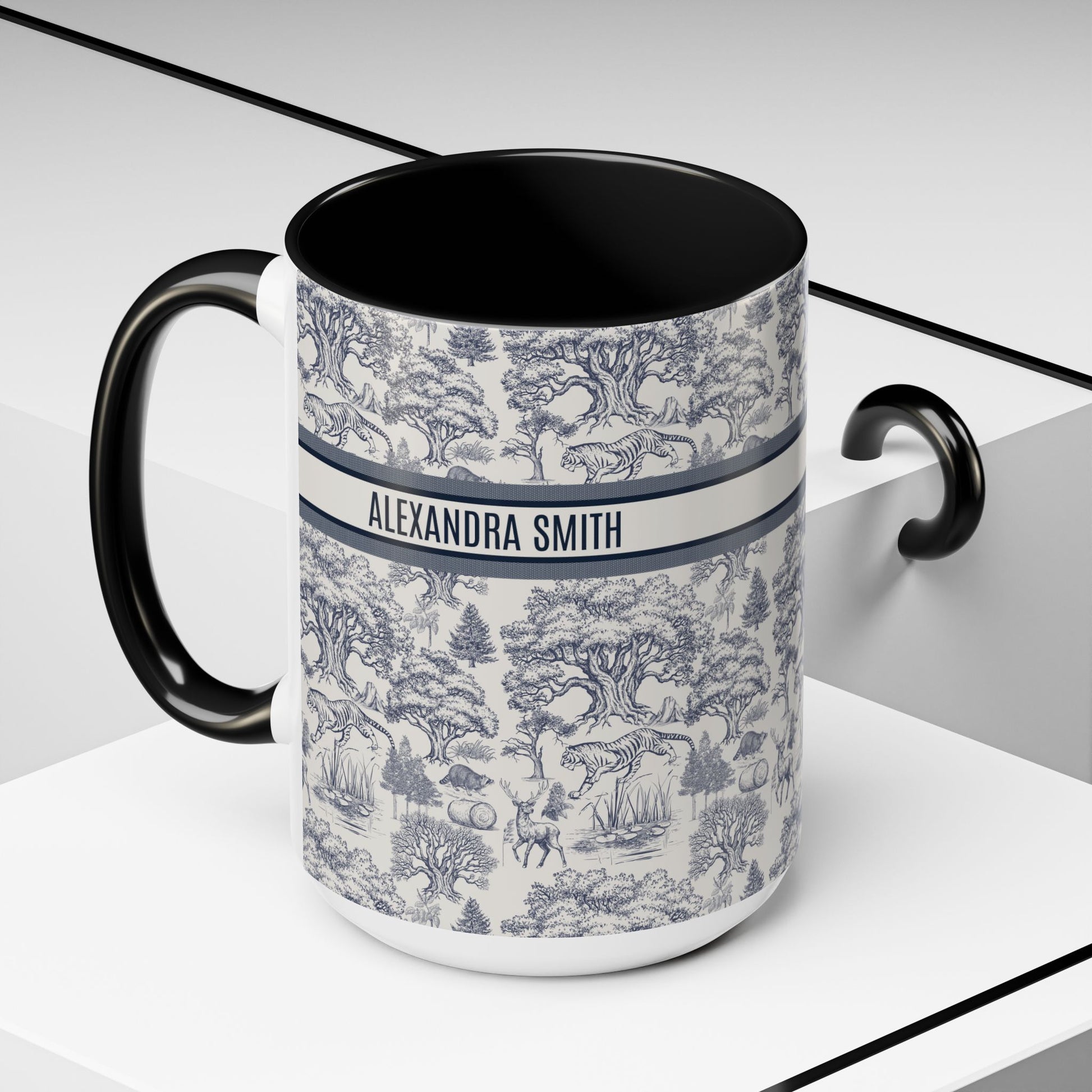 Experience luxury with this personalized Vintage Toile De Jouy French Nature Landscape pattern mug. Perfect for Christmas, birthdays, and anniversaries, this mug adds a touch of elegance to your daily routine. Ideal for nature lovers and art enthusiasts.