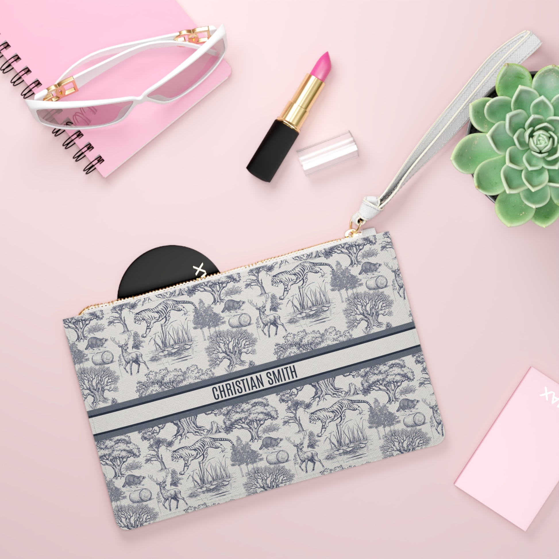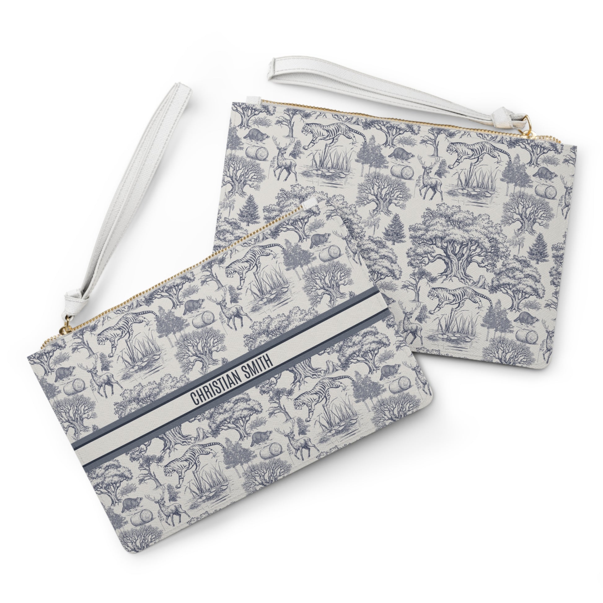 This personalized name luxury vintage clutch bag features a Toile De Jouy French nature landscape seamless pattern, giving off a sophisticated and elegant vibe. Perfect for those who appreciate timeless design and want to add a touch of luxury to their outfit. Ideal for Christmas and birthday gift ideas.