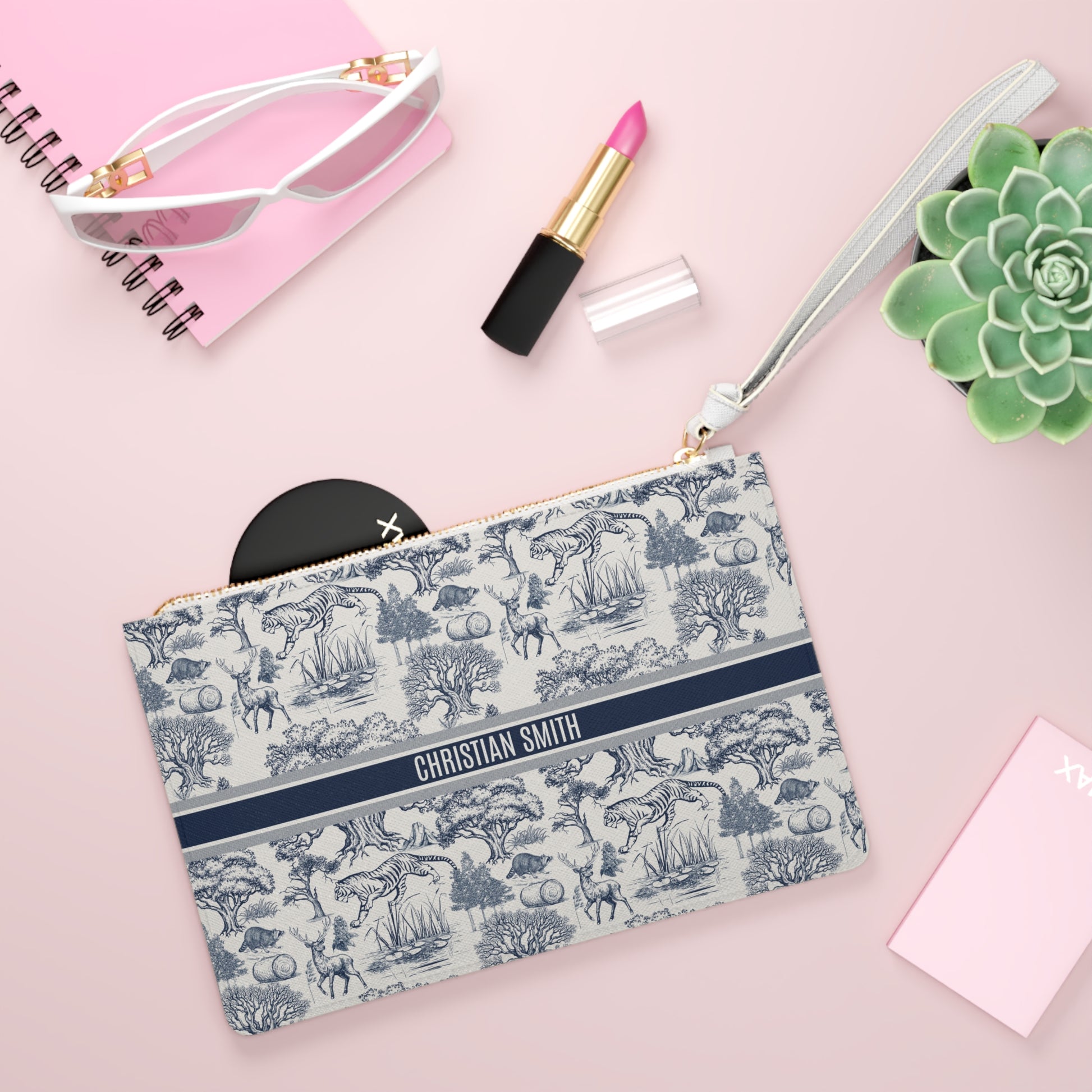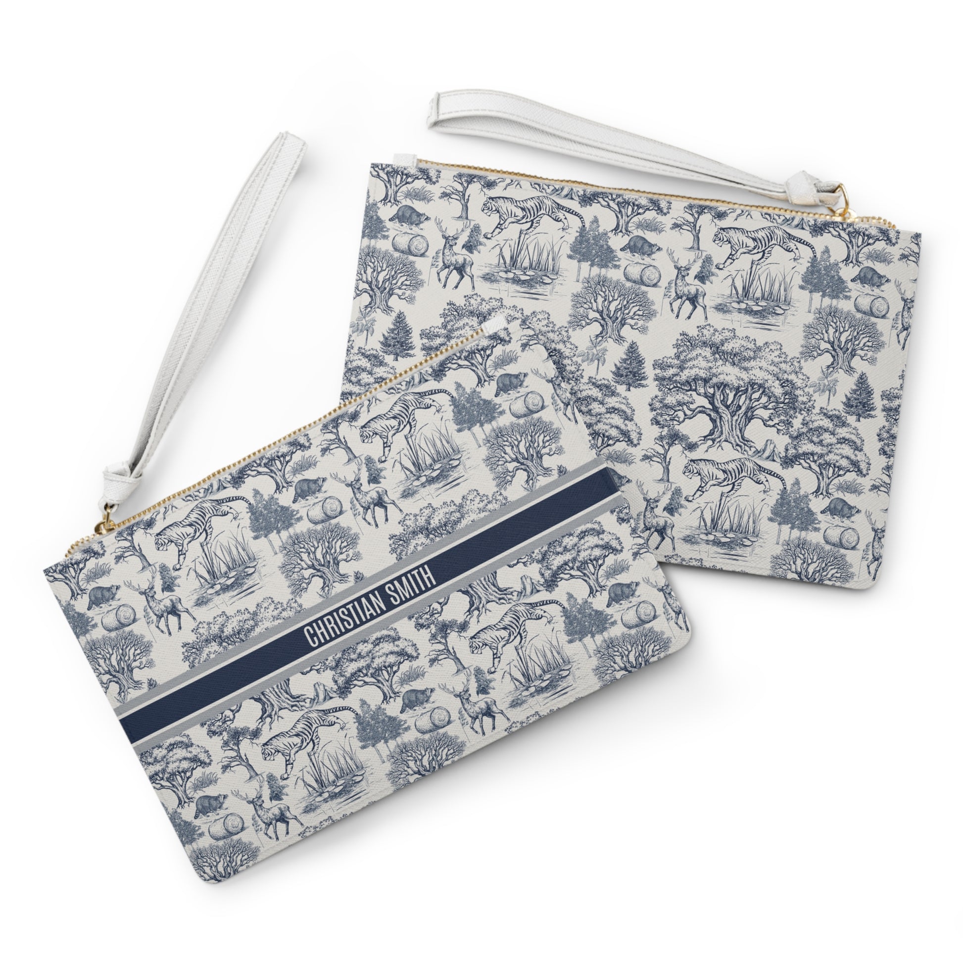 Personalized Name Luxury Vintage Toile De Jouy French Nature Landscape Seamless Pattern Art Version 1 Clutch Bag | Christmas Birthday Gift Ideas