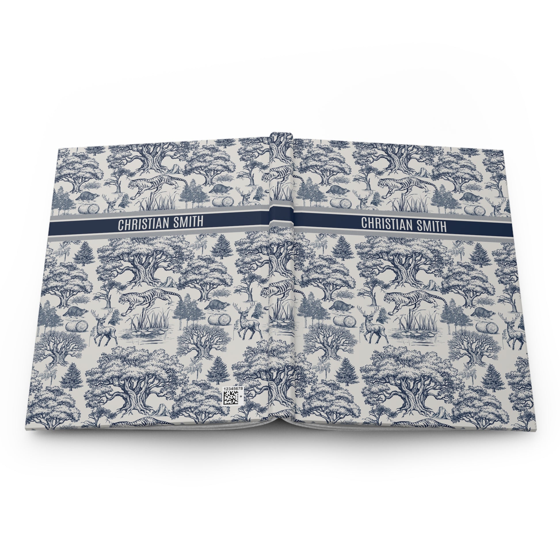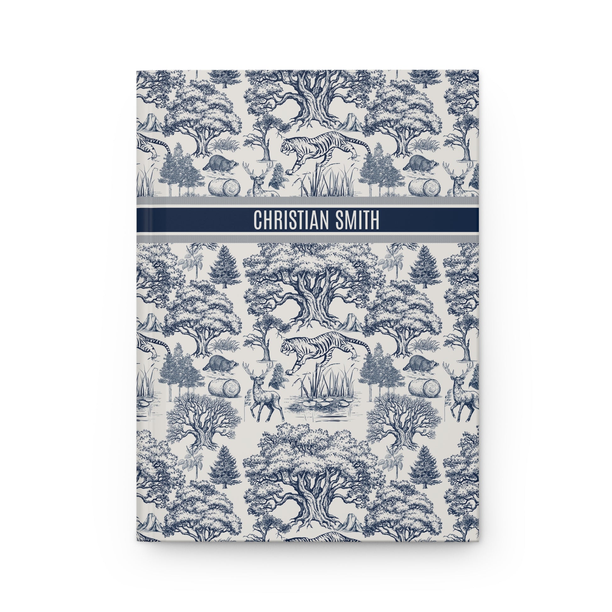 Personalized Name on Toile De Jouy Seamless Nature Landscape Pattern Journal Version 1. This journal exudes a sophisticated and elegant vibe, perfect for nature lovers and those who appreciate personalized items. Ideal for writers, artists, and students. Suitable for birthdays, anniversaries, and back-to-school season.