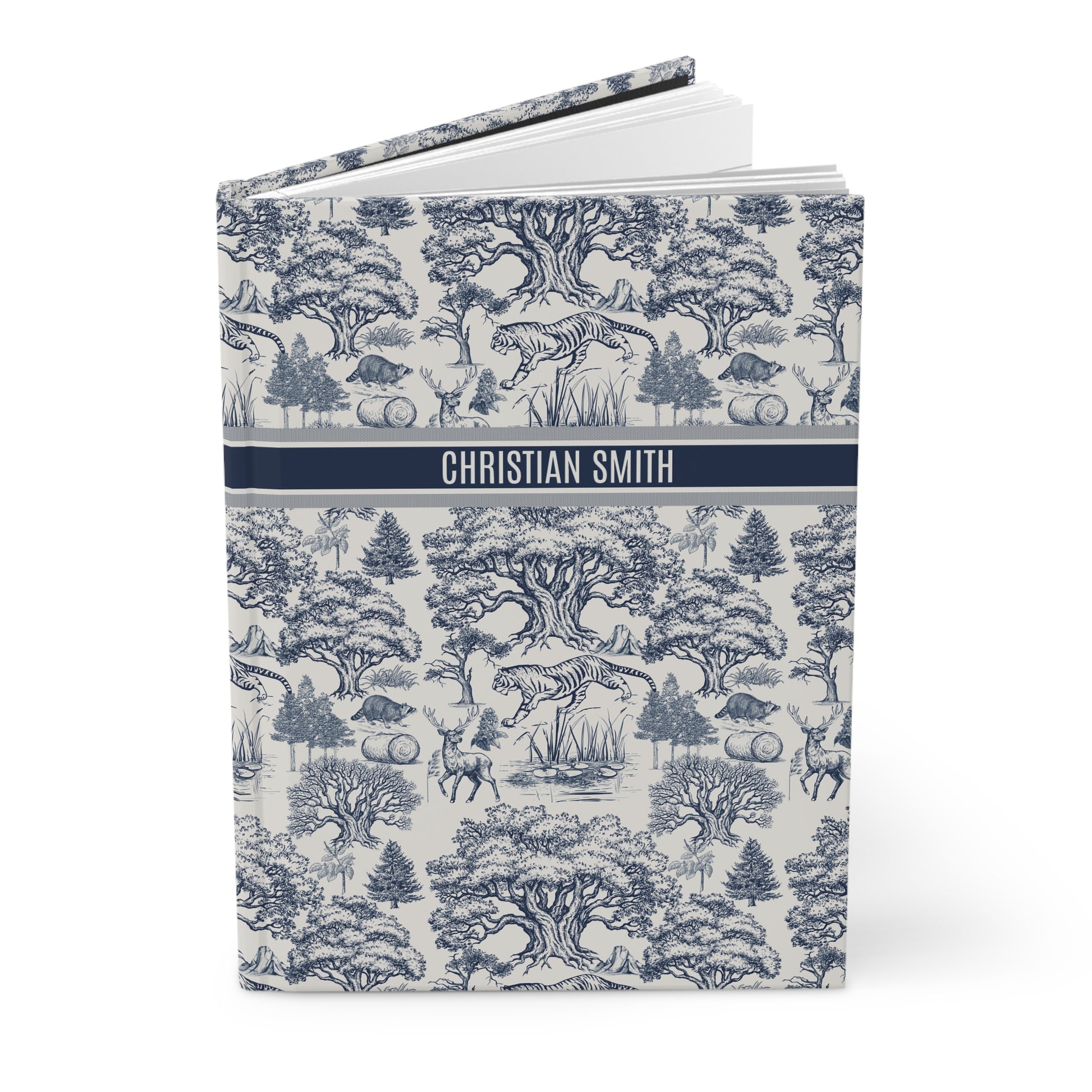 Personalized Name Toile De Jouy Seamless Nature Landscape Pattern Hardcover Journal Version 1