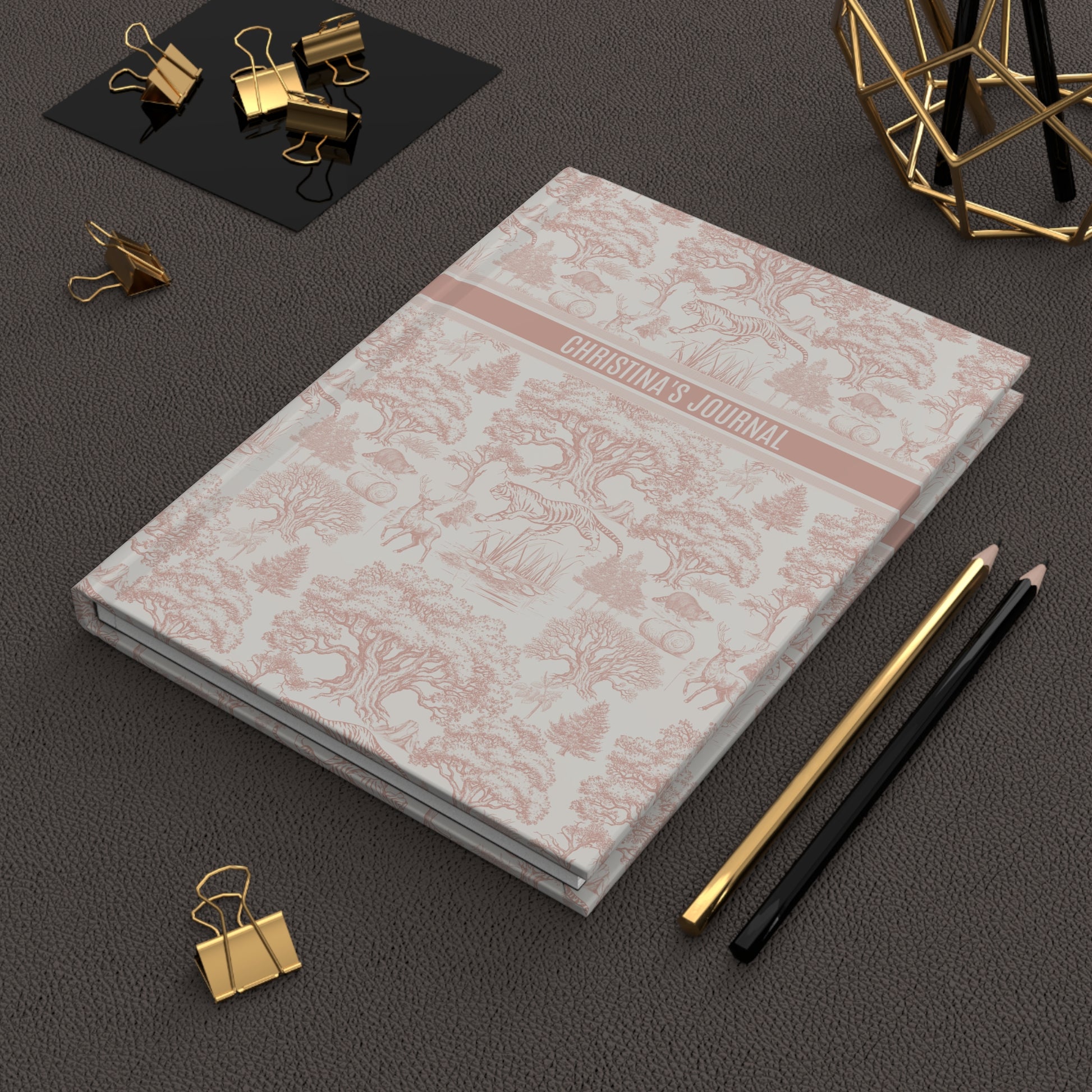 Personalized Name Toile De Jouy Seamless Nature Landscape Pattern Hardcover Journal Version 6