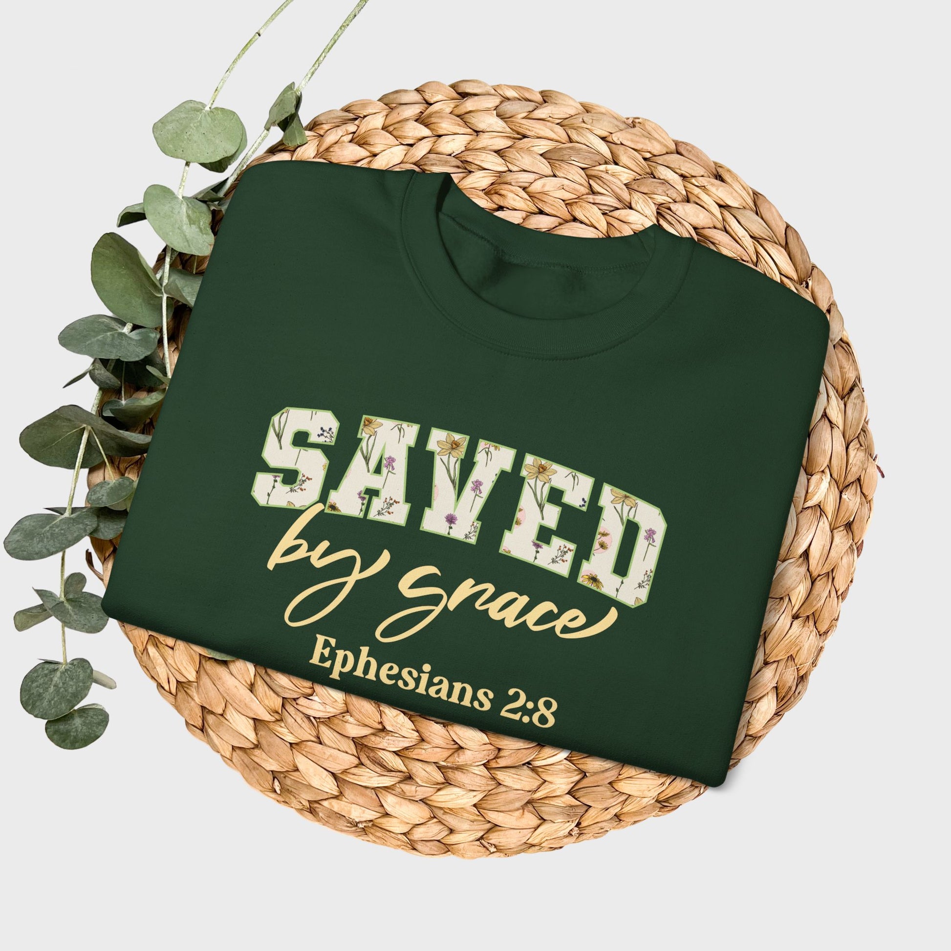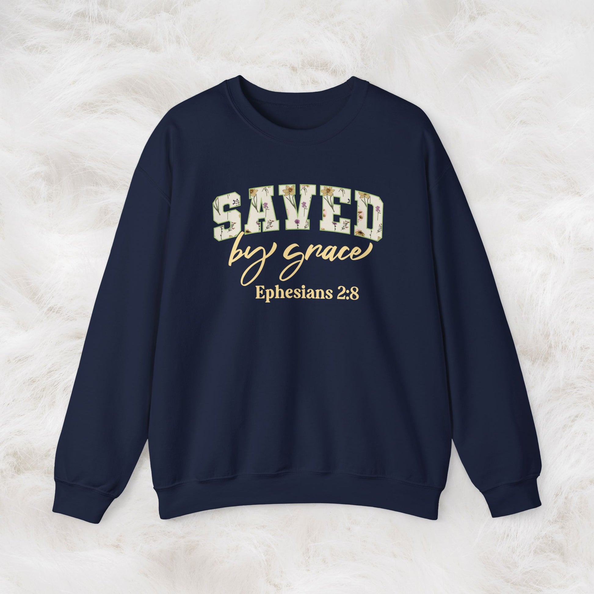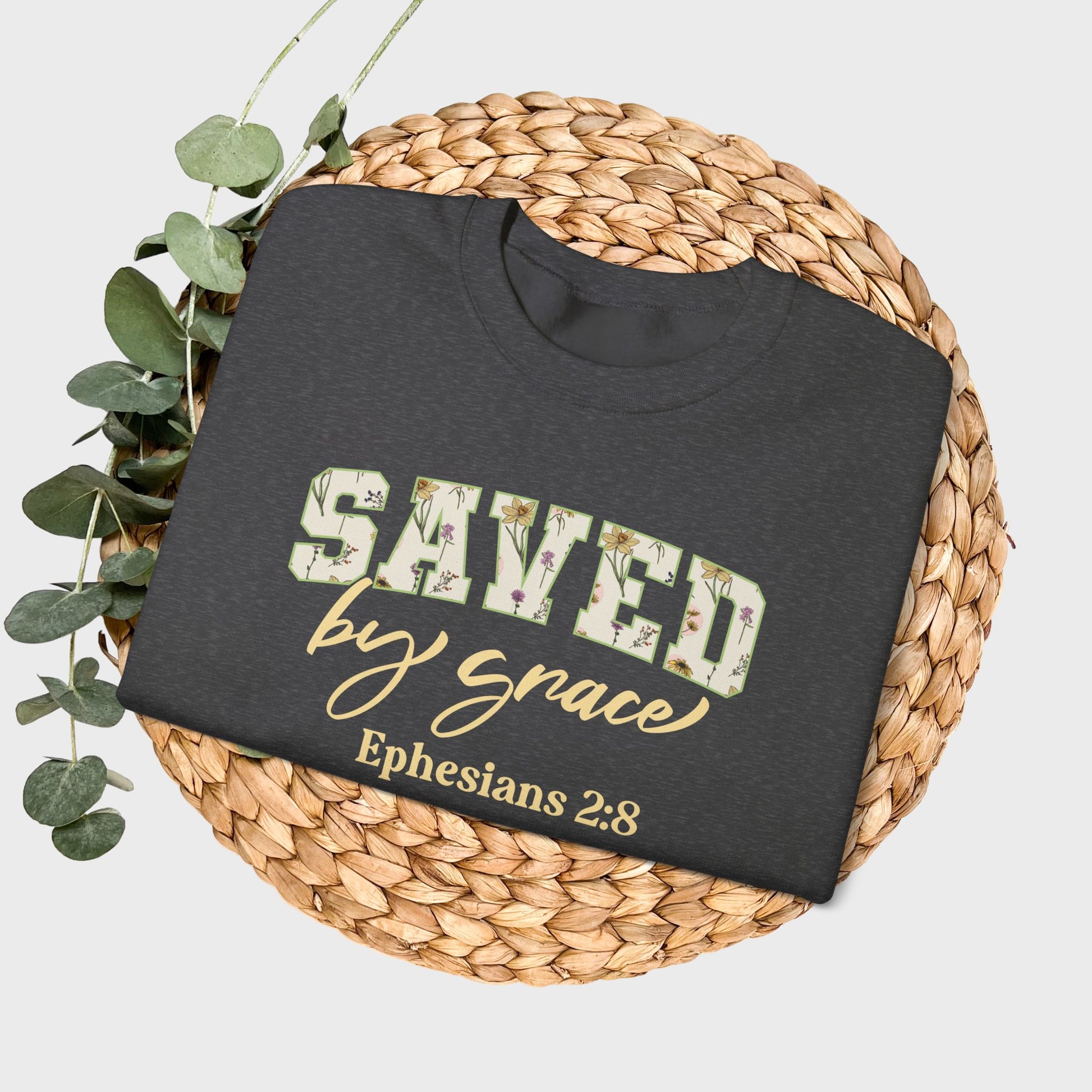 Saved by Grace Ephesians 2:8 Bible Verse Christian Sweatshirt | Inspirational Crewneck Unisex Gift | Cozy Everyday Wear