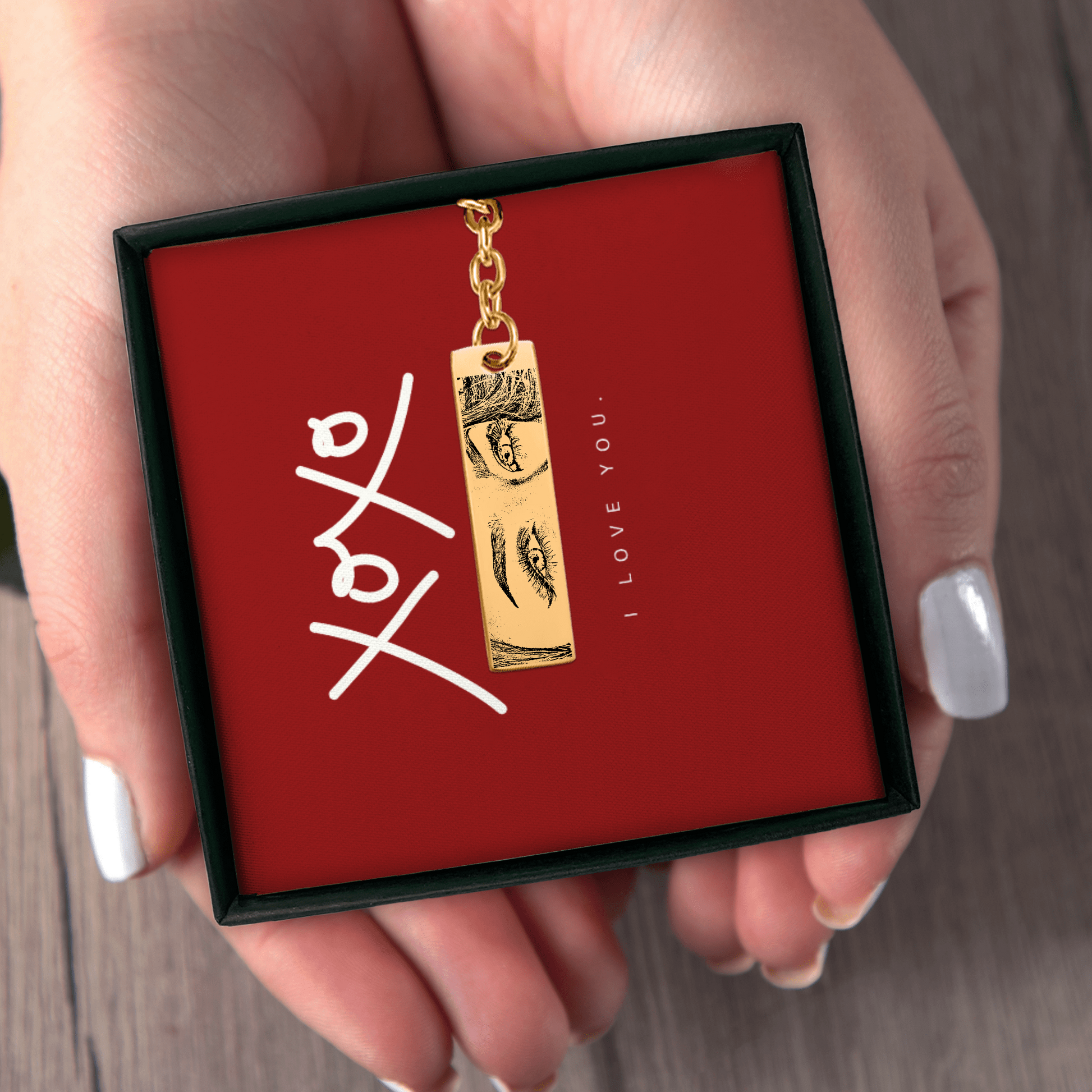 Personalized Custom Stunning Her Eyes His Your Eyes Eyes Engraved Vertical Bar Keychain | Special Gift Ideas for Birthday Christmas Anniversary Valentine's Day and More