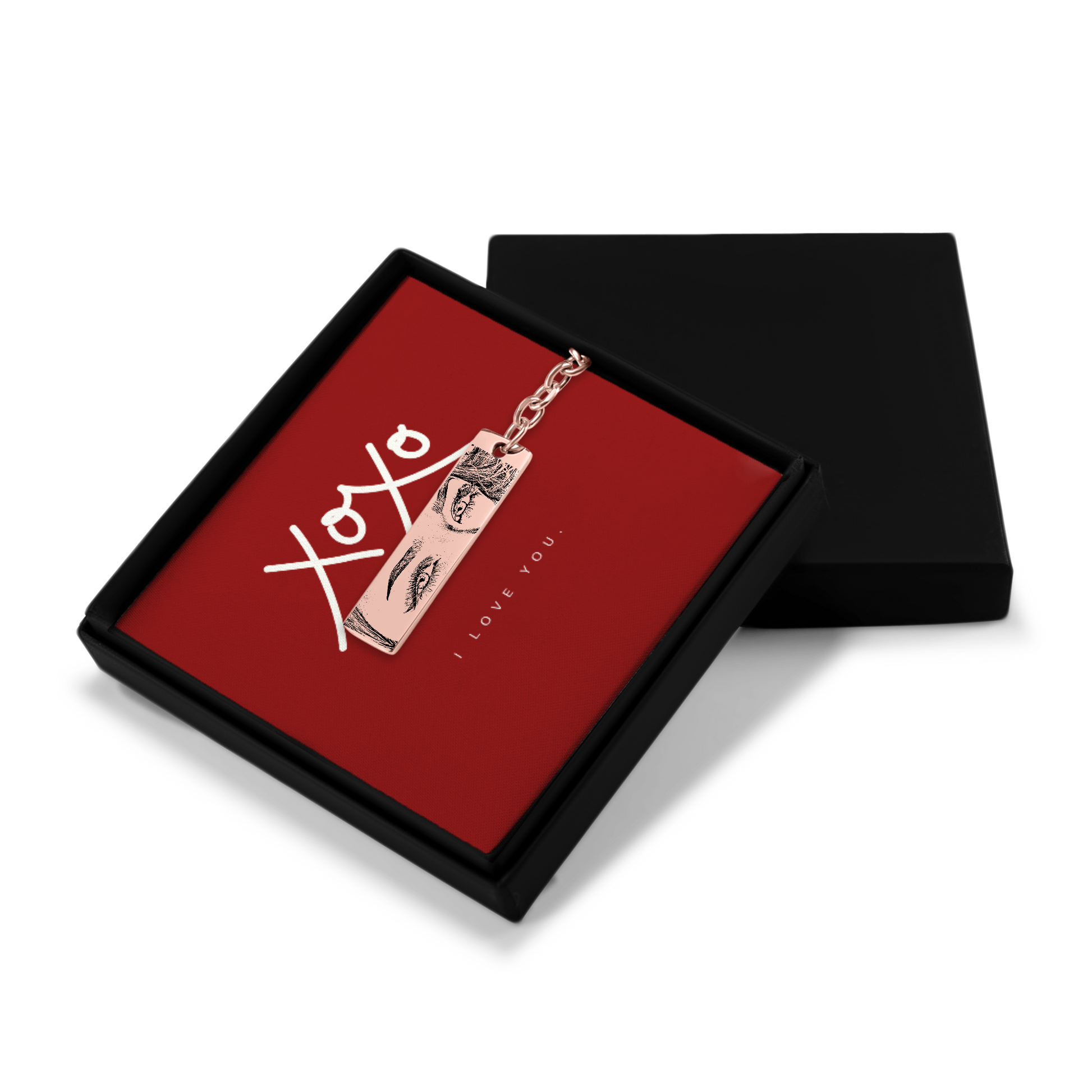 Introducing the Engraved Vertical Bar Keychain, a beautifully personal piece designed to keep the one you love close to your heart — literally. This unique keychain lets you engrave her eyes his eyes Your eyes on the front of the bar, creating a one-of-a-kind keepsake that’s meaningful, intimate, and unforgettable.